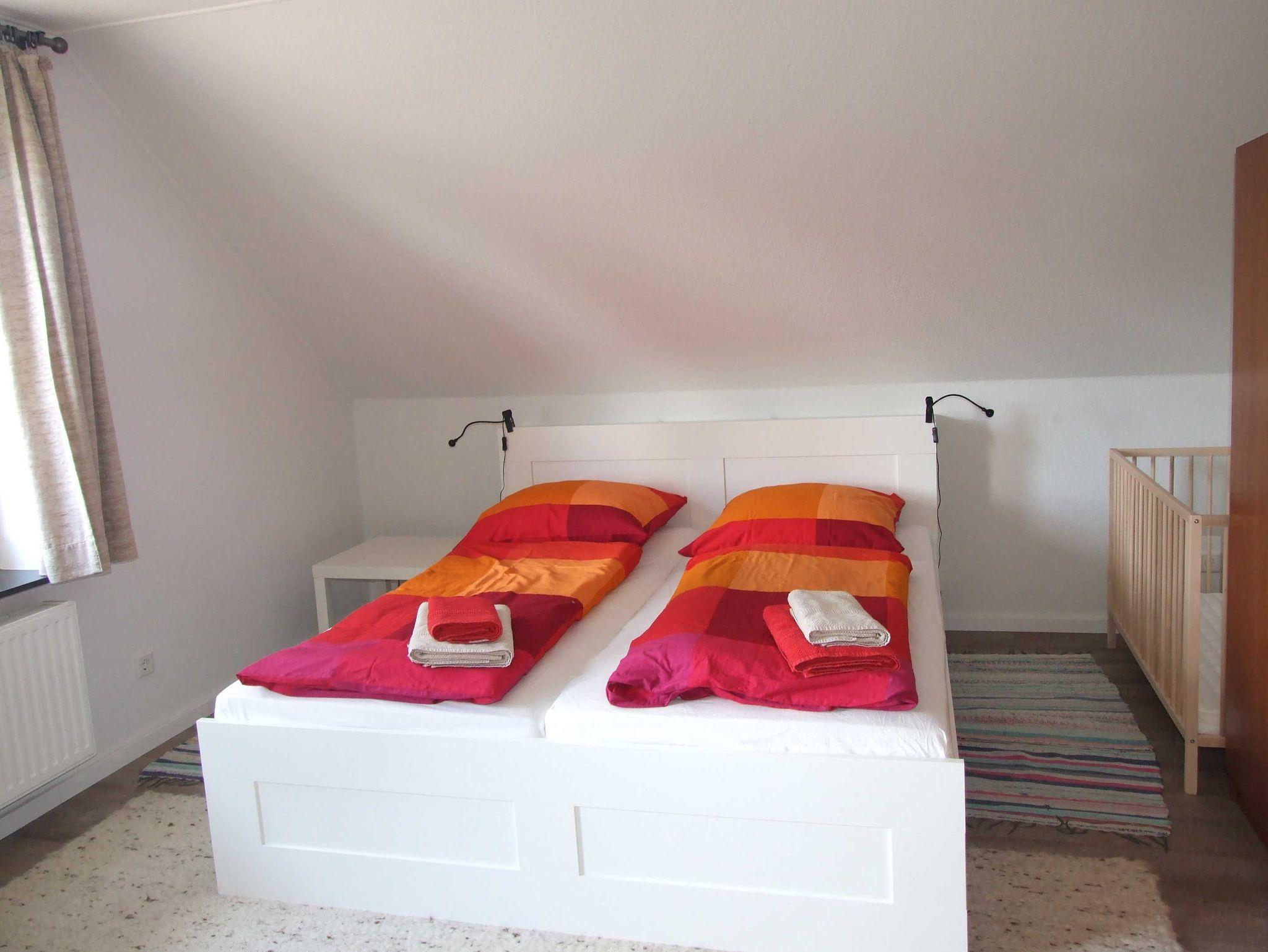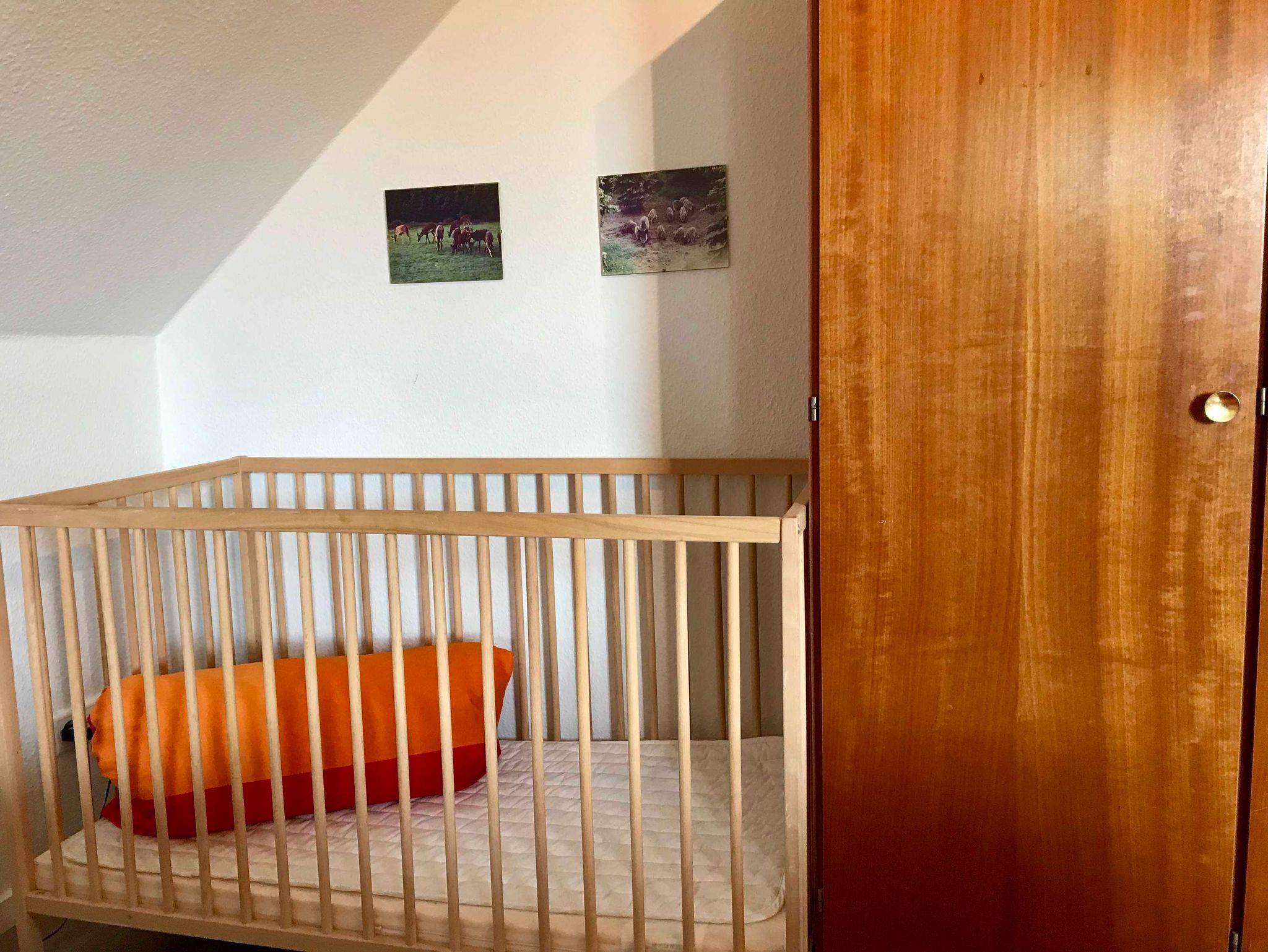 • 1 großes Wohn-Schlafzimmer mit Doppelbett, Schlafsofa für 1 Person, Babybett (mit Matratze aber ohne Bettzeug und Bettwäsche), großem Kleiderschrank, Sat-TV