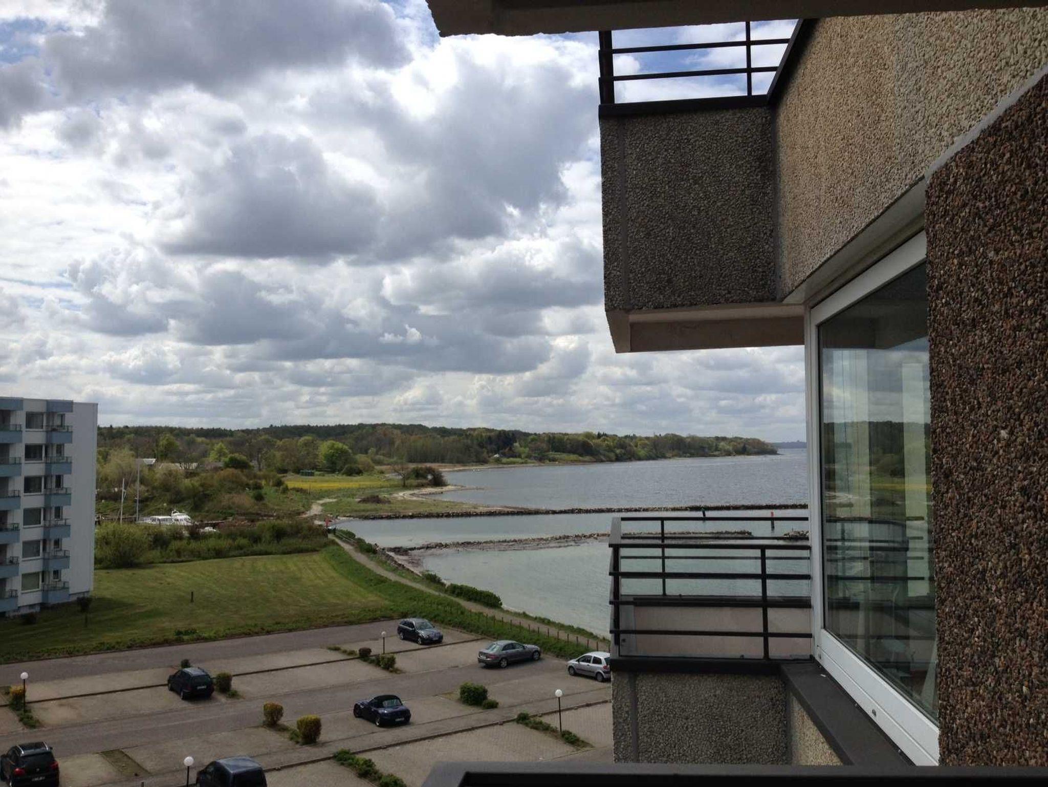 Wohlfühlen mit dem ersten Schritt, in unserer renovierten Ferienwohnung in Glücksburg, mit weitem Blick übers Land bis zur Außenförde und Seitenblick zur Innenförde.
