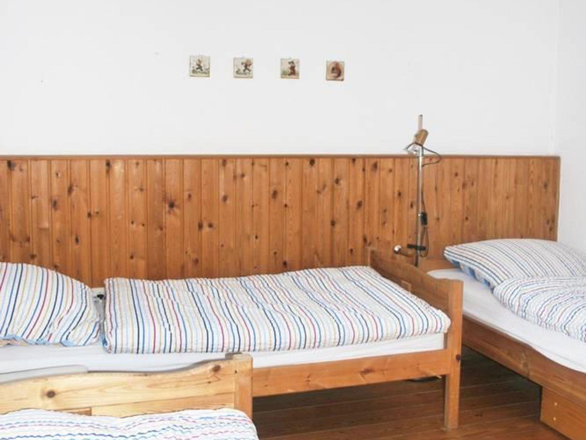 • 1 Schlafraum mit drei Einzelbetten, (Es kann ein zusätzliches Kind bis zu 3 Jahren gebucht werden, kostenfrei im vorhandenen Kinderbett.)