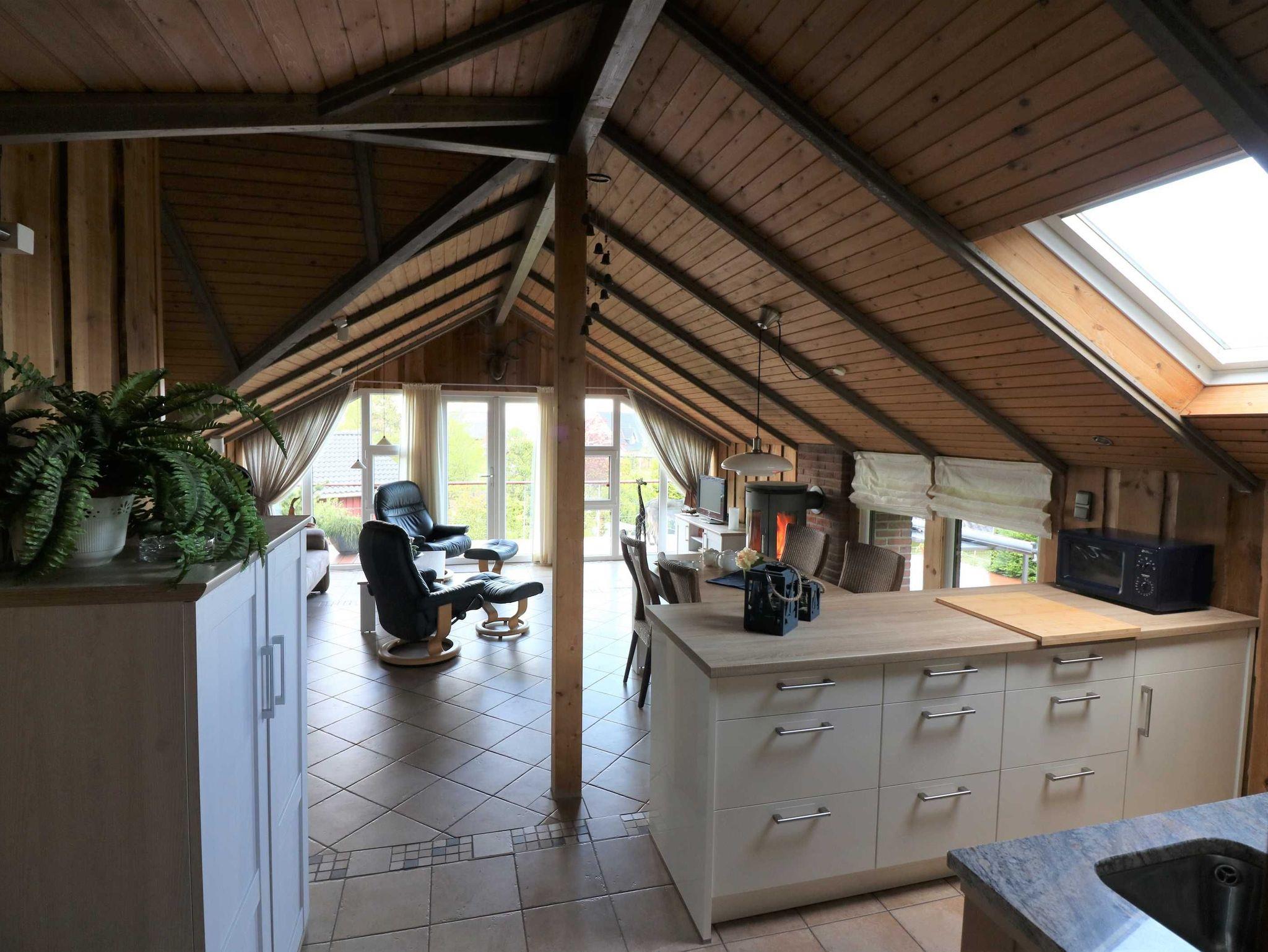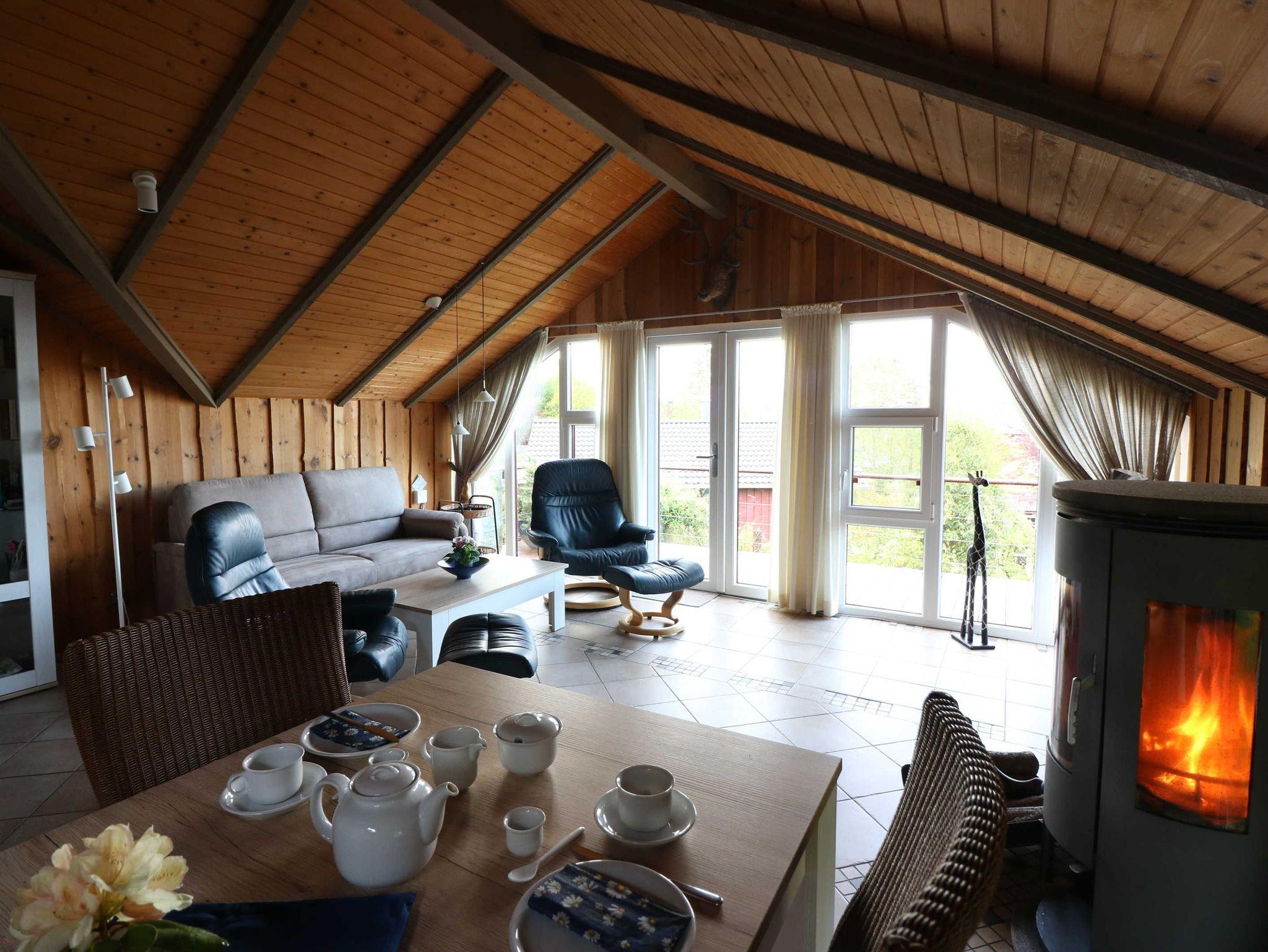 Das Ferienhaus hat ein gemütlichen Wohnbereich mit Couch sowie Sesseln und Kaminofen, einem einladenden Essbereich und technische Komponenten wie: TV, DVD einer Stereoanlage sowie WLAN. Das Ferienhaus verfügt neben dem Kaminofen auch über ein Klimasplittgerät, elektrische Heizkörper & Fußbodenheizung (Bad).