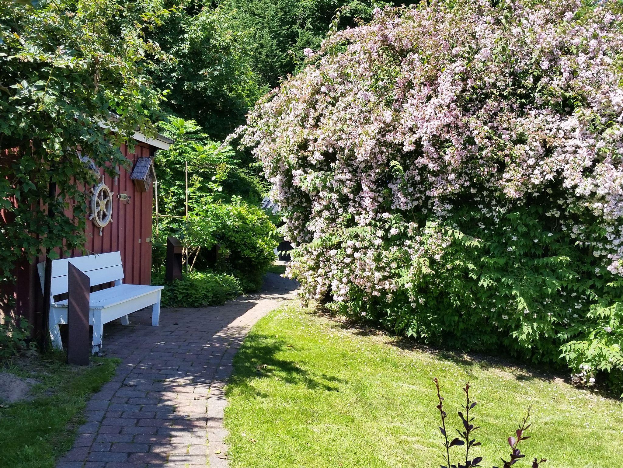 Auf dem Grundstück haben Sie zwei Terrassen, Strandkorb, Gartenmöbel und Grill, sowie Rasenfläche für Kinder und Hunde.