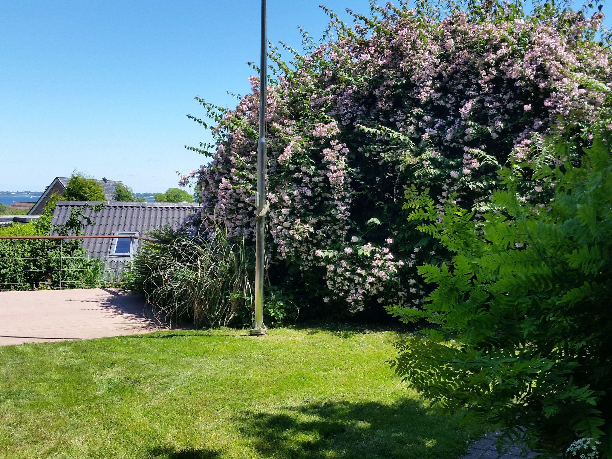 Es liegt auf einem großen, eingezäunten Grundstück in Glücksburg- Bockholm an der Flensburger Außenförde mit eingeschränktem Fördeblick.