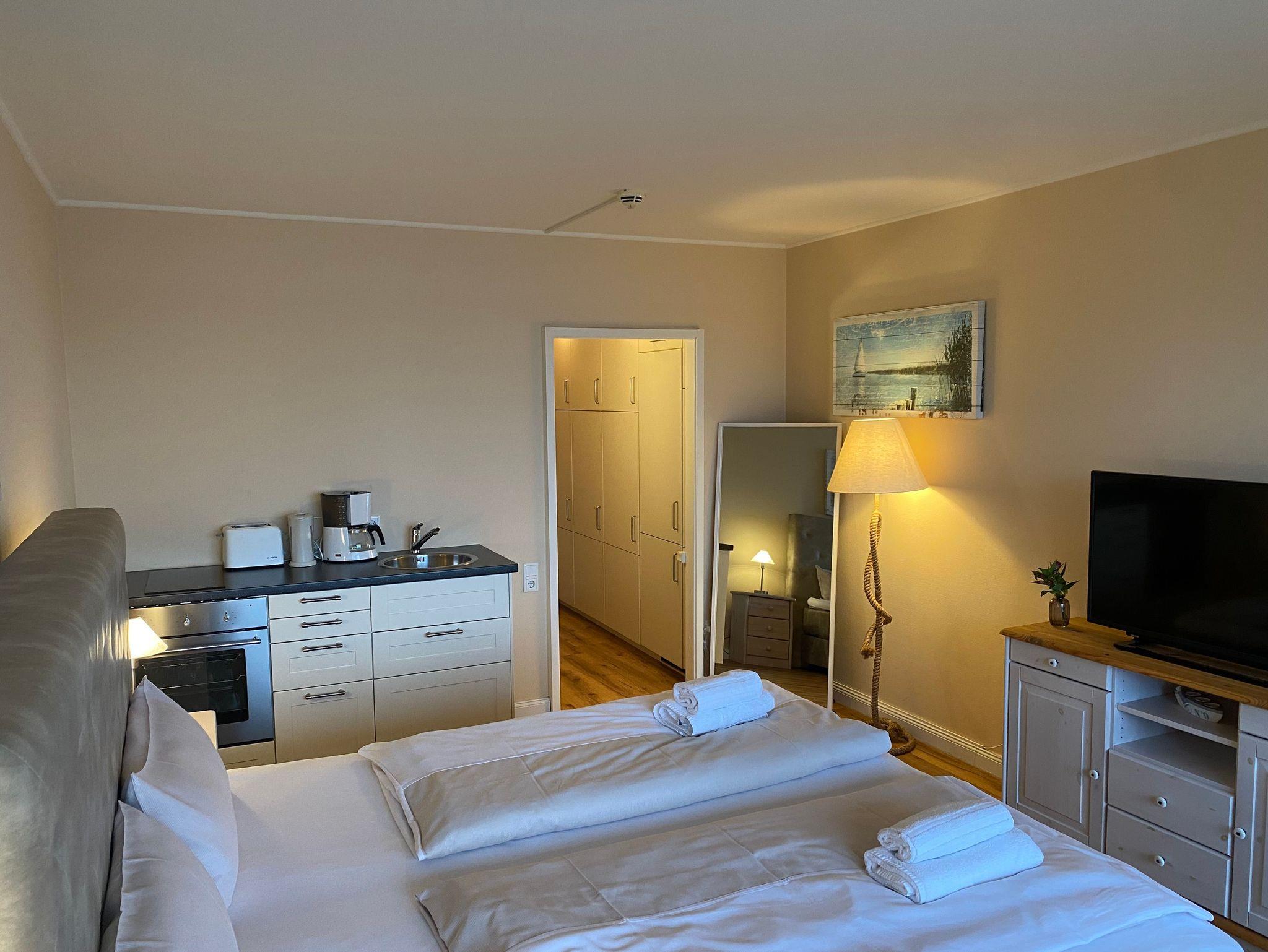 Das private Appartement befindet sich in einem Hotelgebäude und liegt direkt an der Promenade der Flensburger Förde/ Ostsee in Glücksburg.