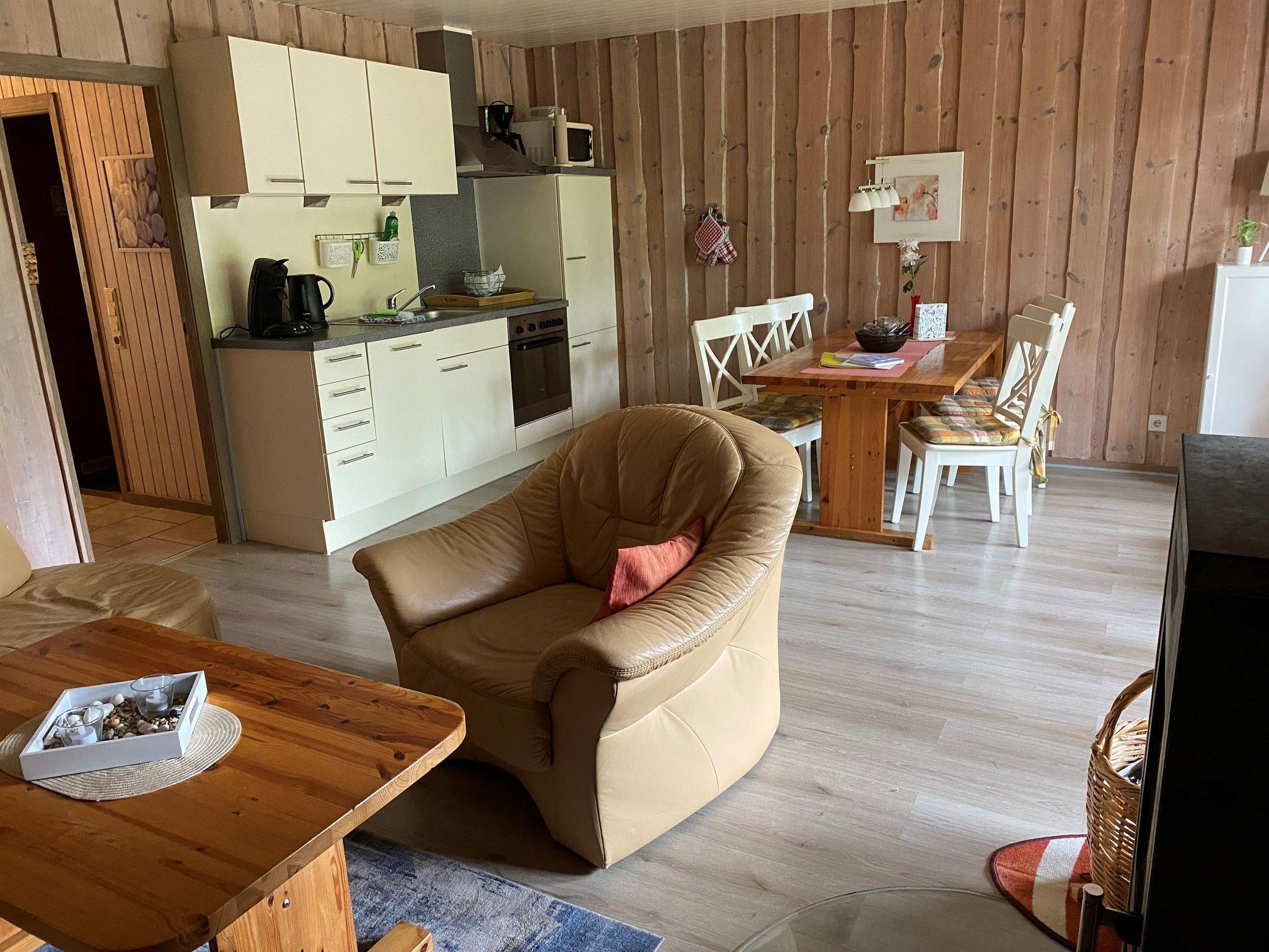 • 1 Wohnzimmer mit gemütlicher Sitzecke und Kaminofen