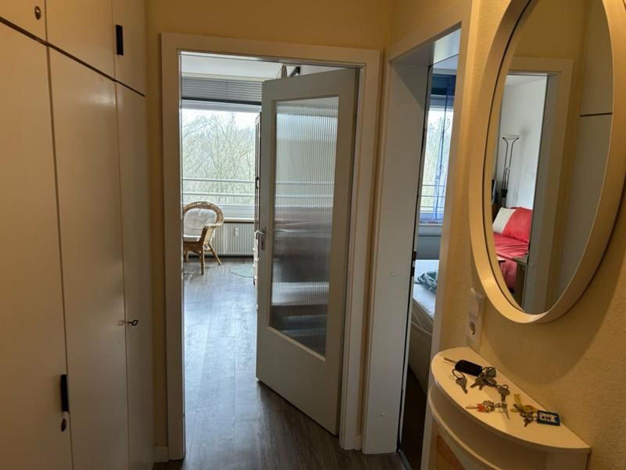 Die Ferienwohnung Glücksgriff befindet sich im 7. Stock der Appartementanlage Sandwighof im Herzen des Kurzentrums Glücksburgs.
