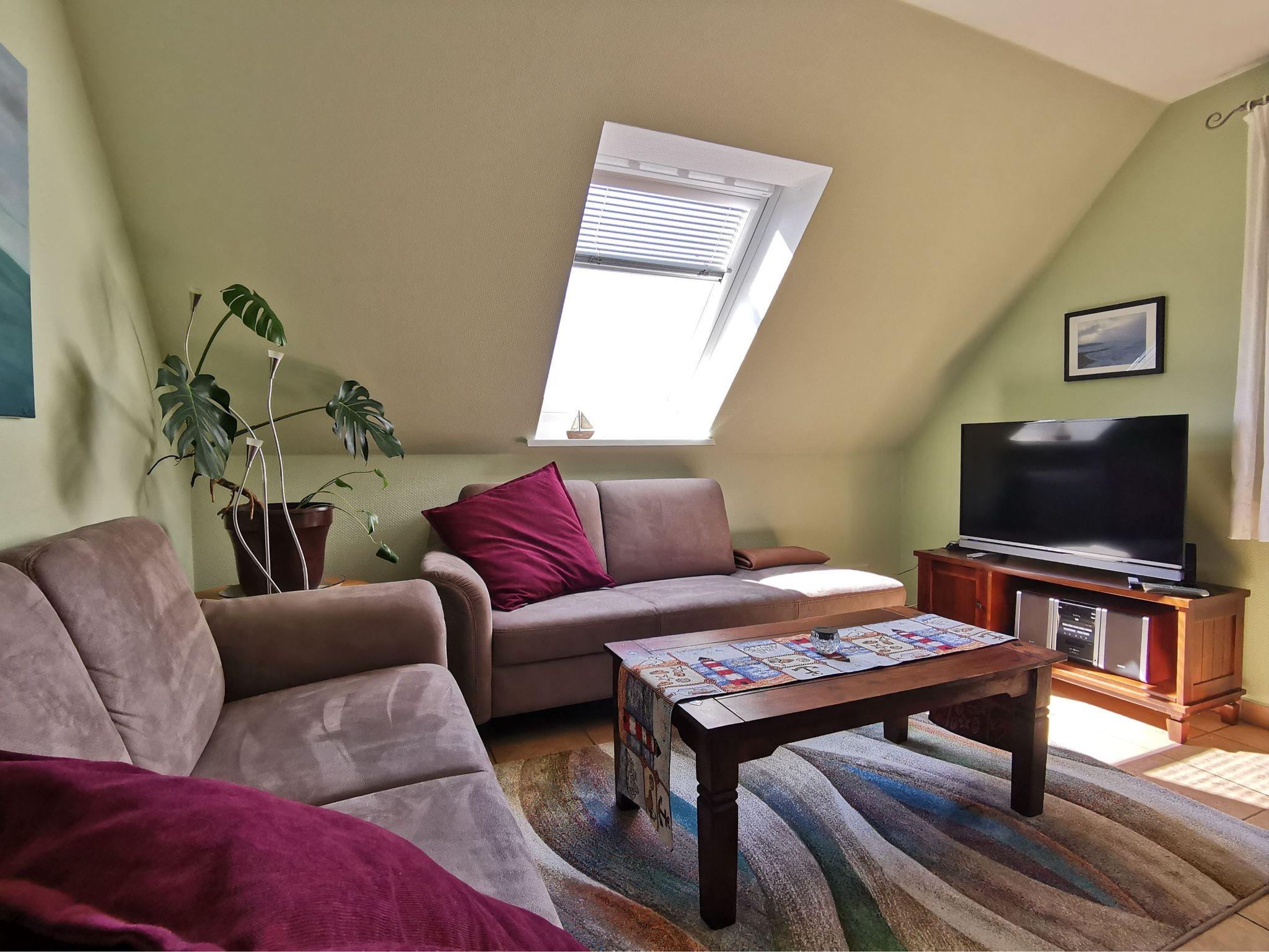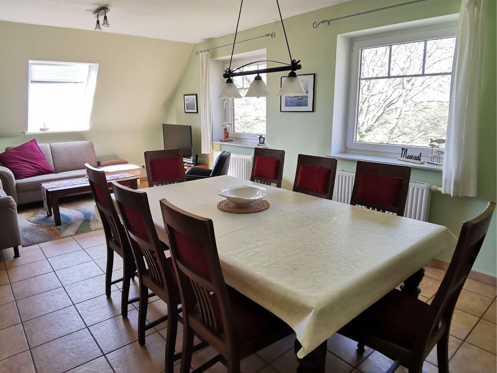 • Die 120 qm große Ferienwohnung ist im oberen Bereich des Hauses gelegen und bietet Ihnen folgende Räumlichkeiten und Ausstattungen: