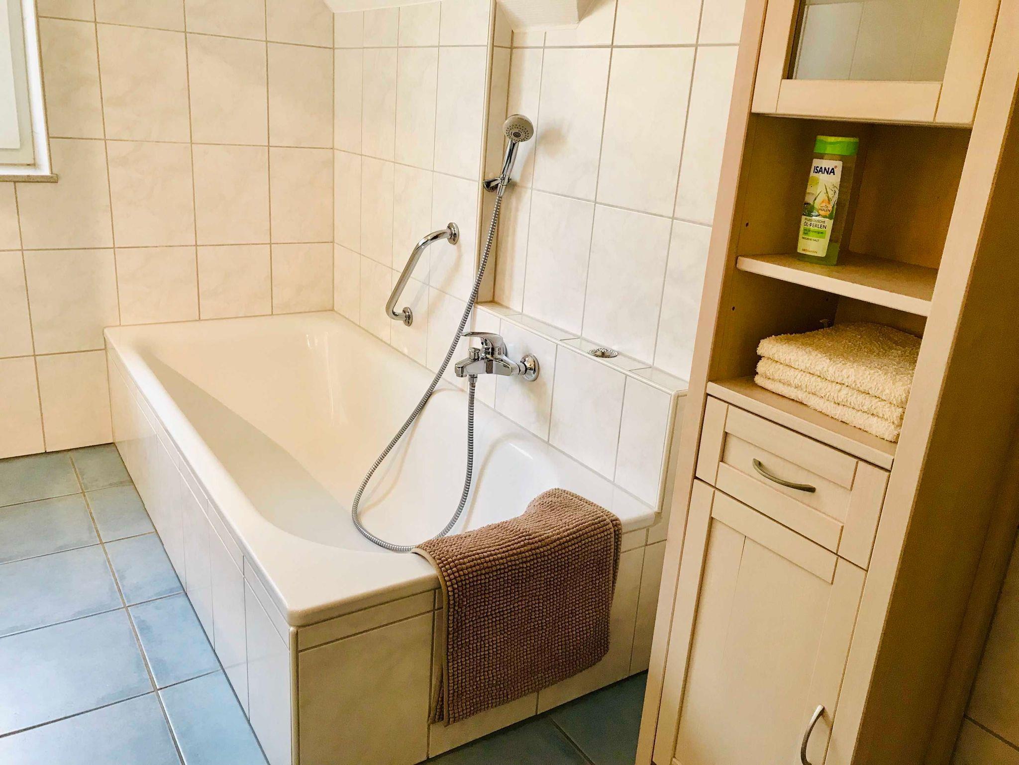 • 1 Bad mit Wanne, Dusche, Waschbecken, WC