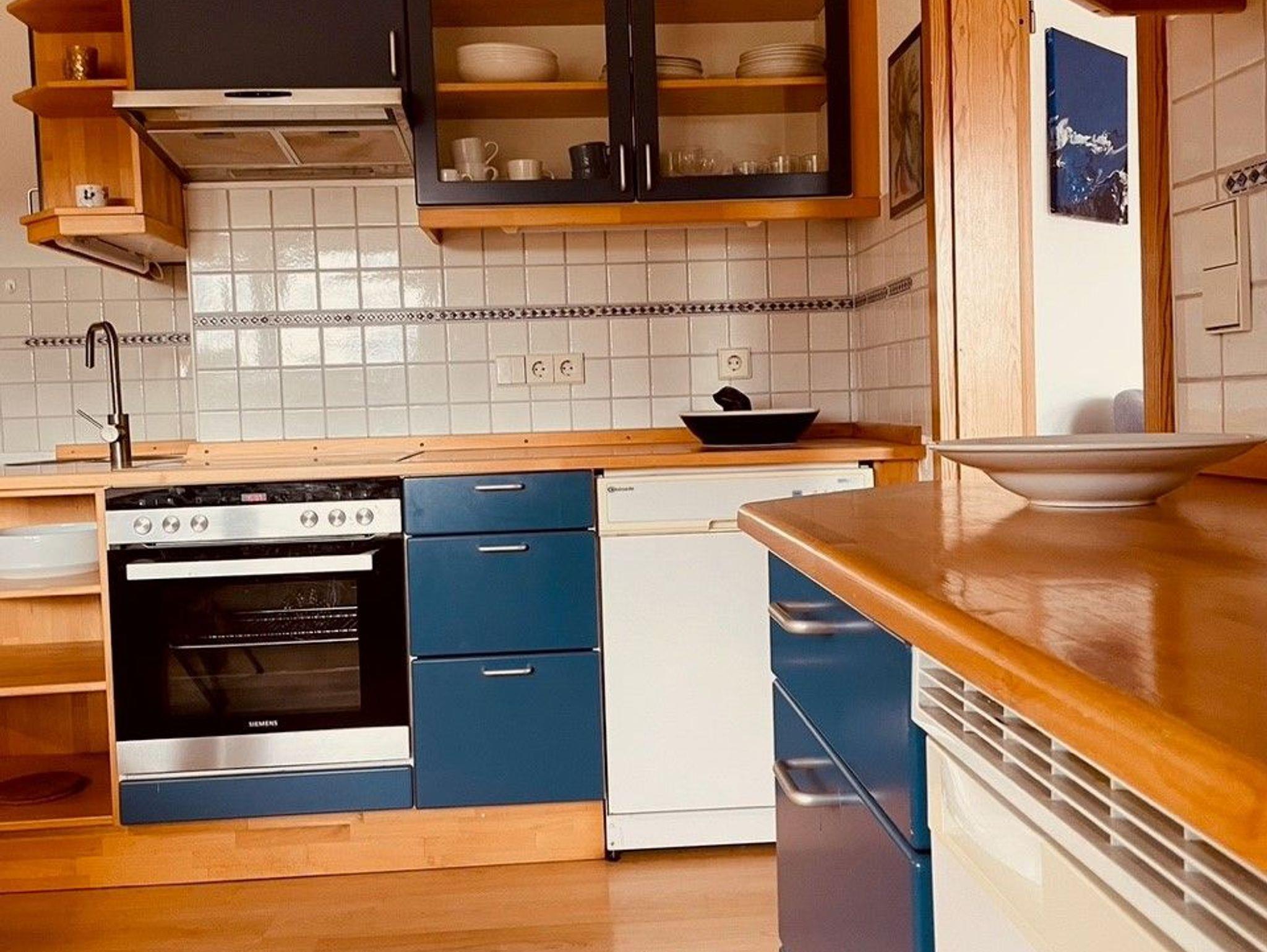 Die gesamte Ferienwohnung ist gemütlich und stillvoll eingerichtet. Unsere Wohnküche (mit Sofa) ist bestens ausgestattet für gemeinsame Kochaktionen. Im geräumigen Bad befindet sich neben der Dusche auch eine Badewanne.