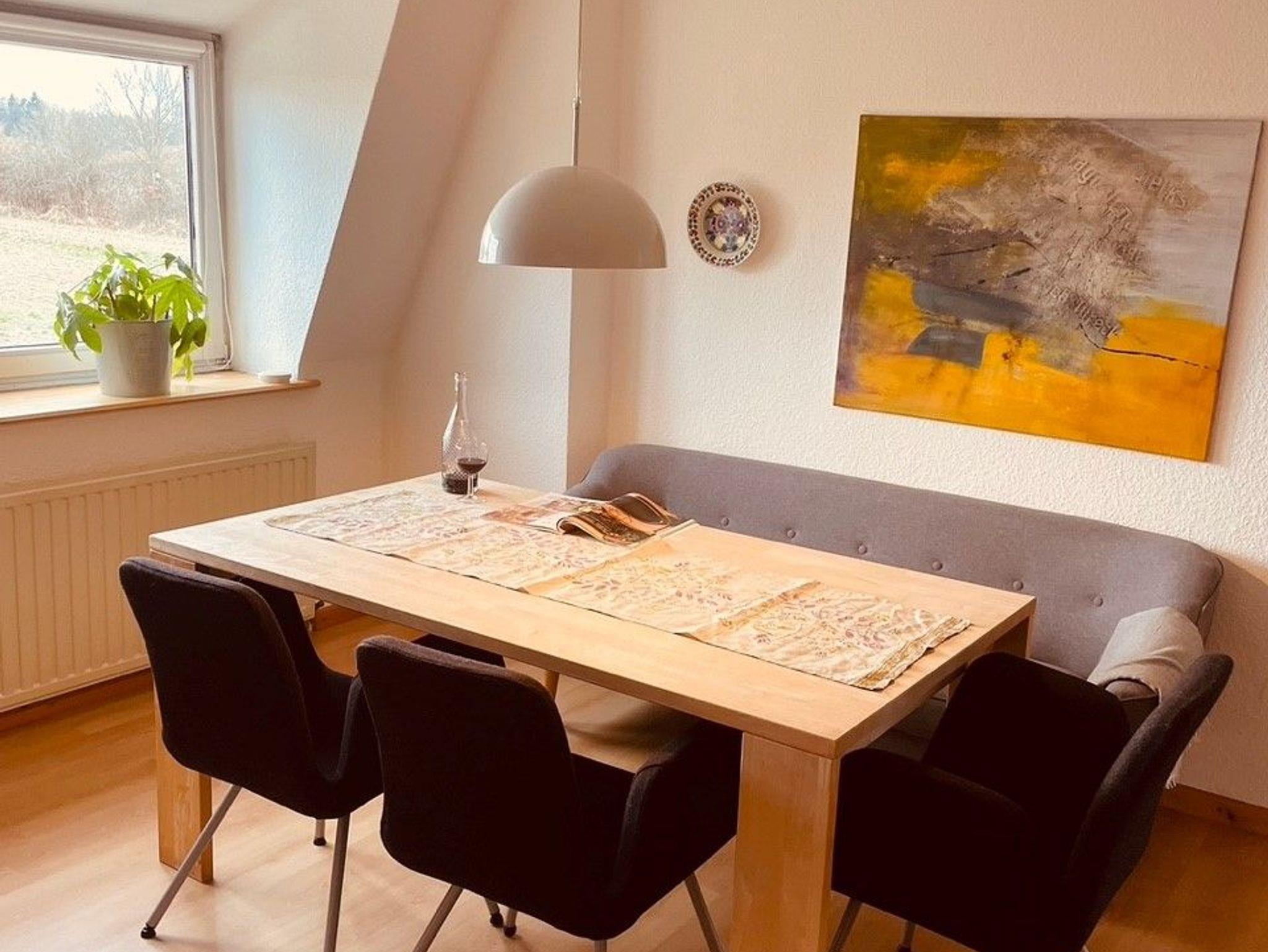 Willkommen in unserer charmanten, liebevoll eingerichteten Ferienwohnung. Die Räume sind hell, lichtdurchflutet mit Weitblick über angrenzende Wiesen und Felder. Für Golfliebhaber ein besonderes Highlight: Blick auf den in unmittelbarer Nähe liegenden Golfplatz (Förde-Golf-Club).