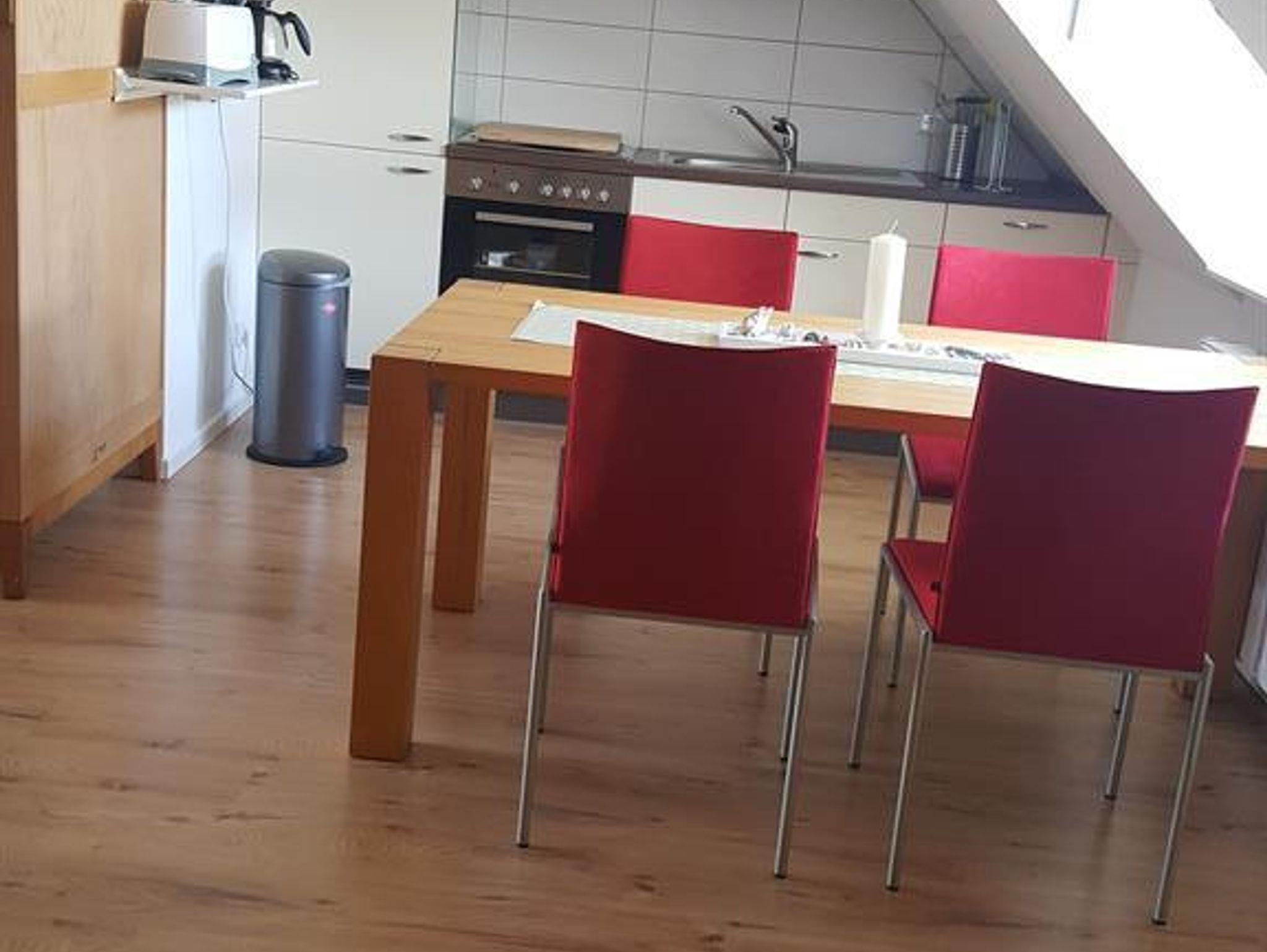 Für das leibliche Wohl steht eine Einbauküche mit angrenzendem Essbereich zur Verfügung. Die Küche ist ausgestattet mit einen Induktionsherd, einen Kühlschrank, Eierkocher, Kaffeemaschine, Wasserkocher und alles was dazu gehört. Im modernen Duschbad werden Sie sich ebenfalls wohlfühlen.