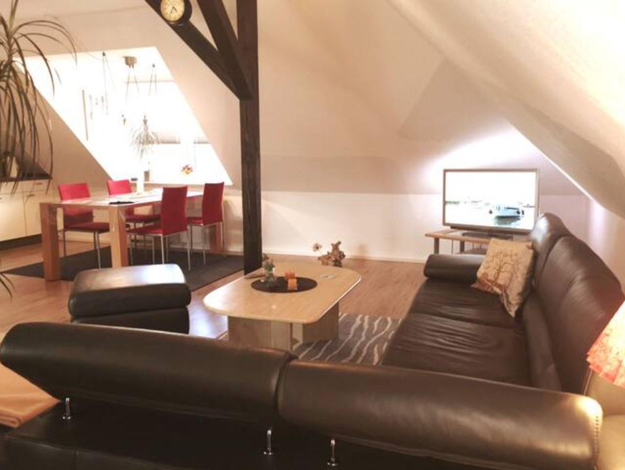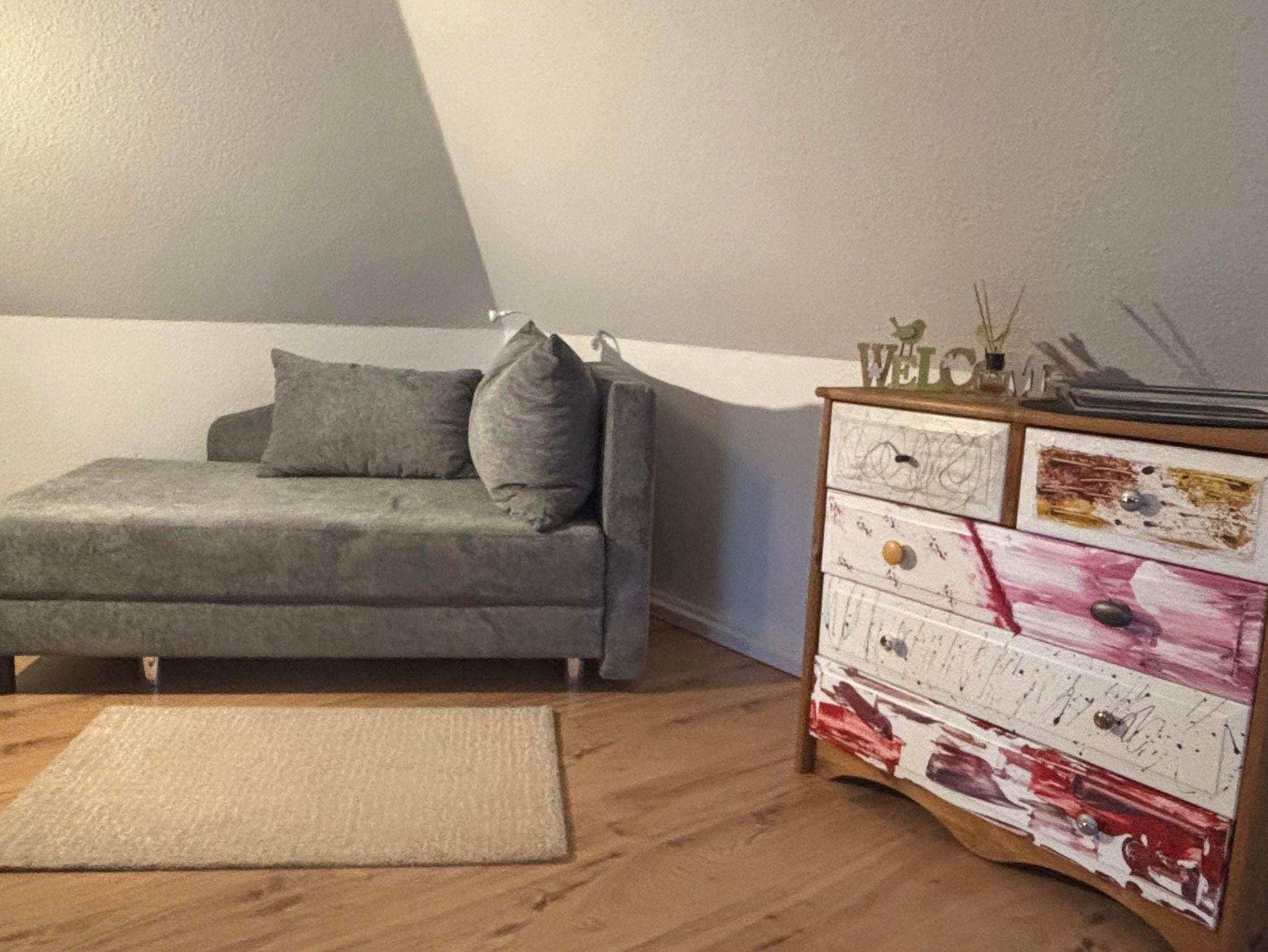 In der geräumigen, neu gestaltenden Ferienwohnung befindet sich ein Doppelbett, eine Sitzecke die auch als Schlafcouch genutzt werden kann, ein Fernseher, SAT-Anlage, Receiver, DVD Player und Spiele für einen gemütlichen Abend.