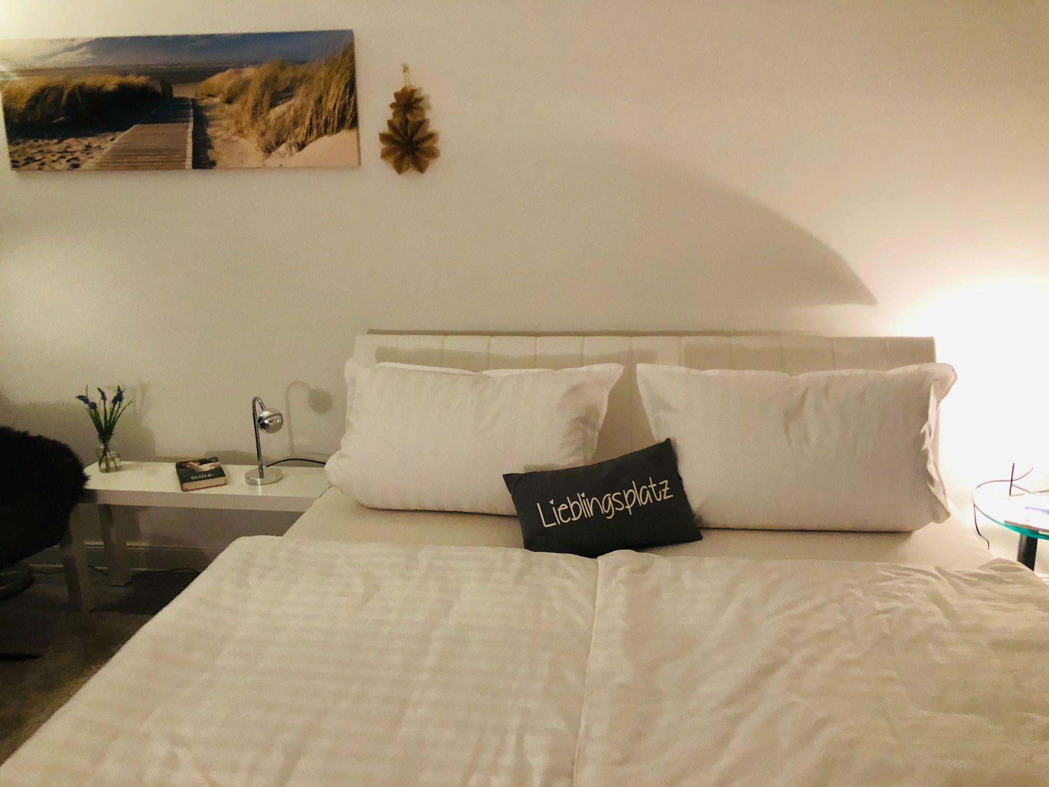 An der Wand gegenüber des Bettes befindet sich ein Flachbildfernseher. WLAN ist vorhanden.