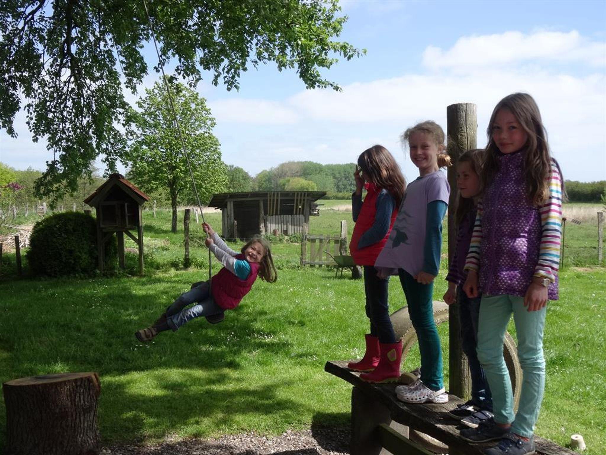 großen Laubwald, einen Spielplatz, eine Tischtennisplatte, Tischfußball, einen