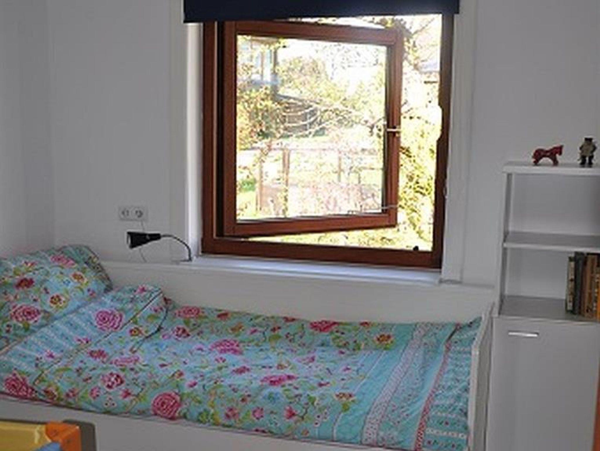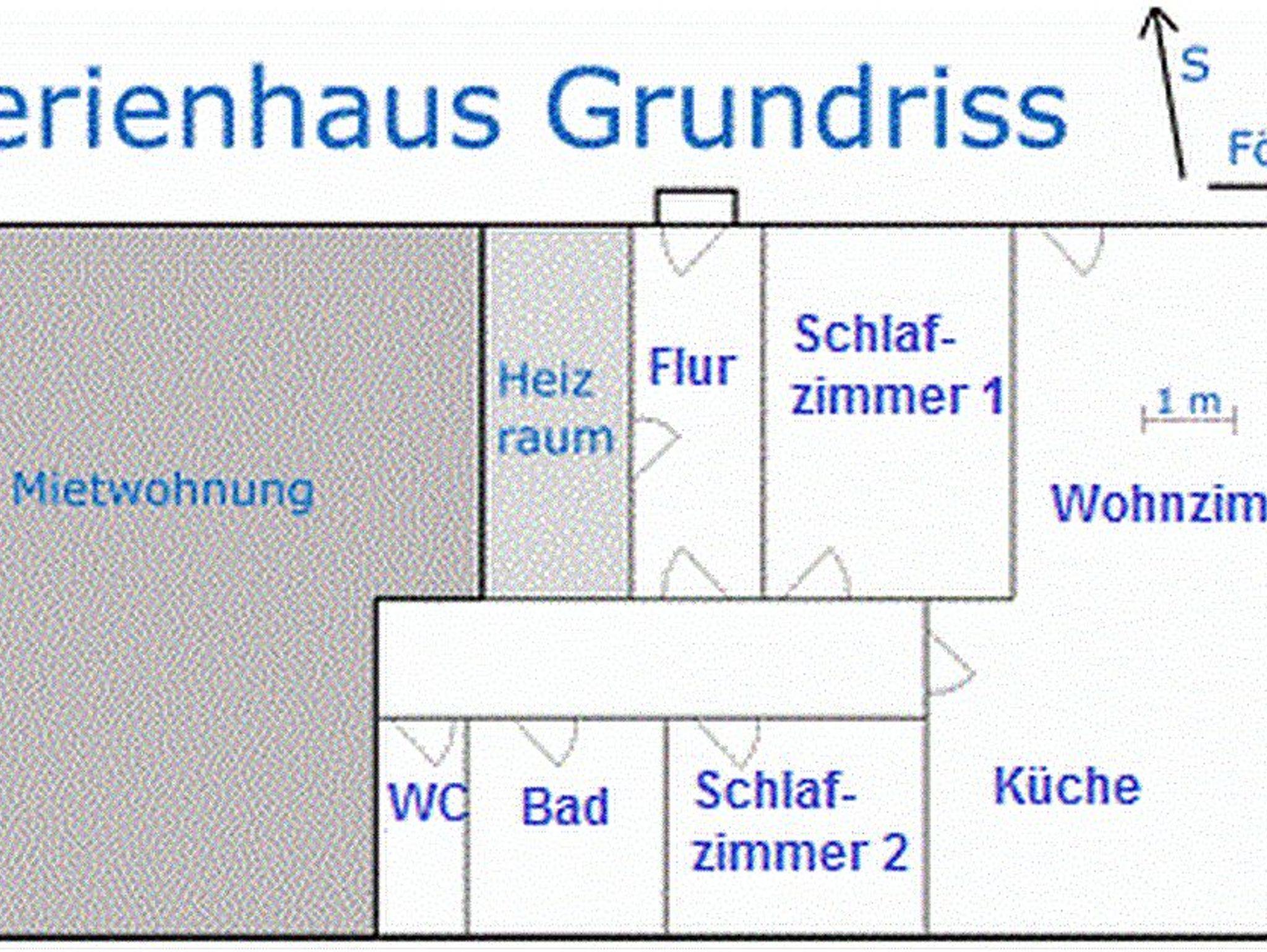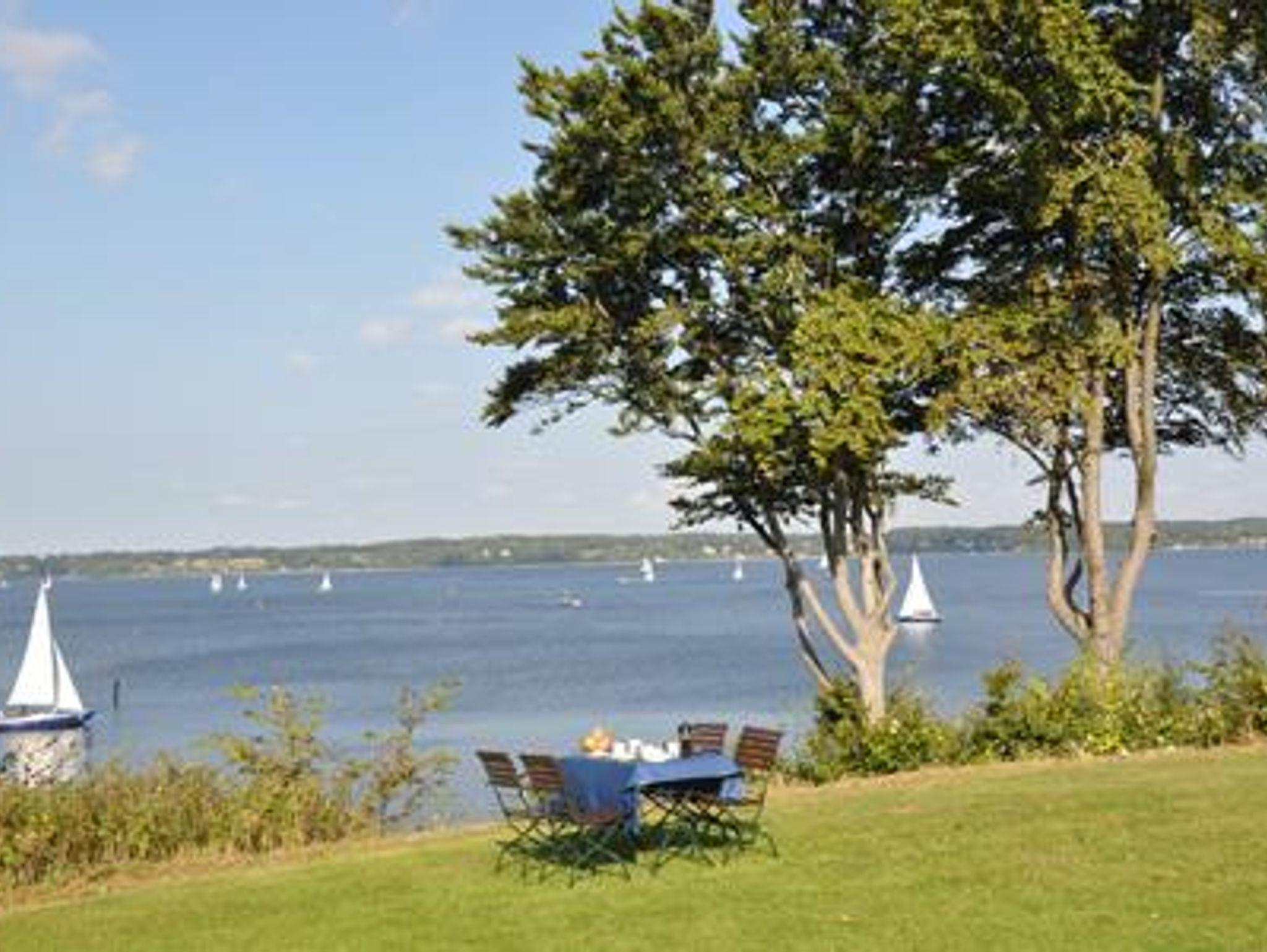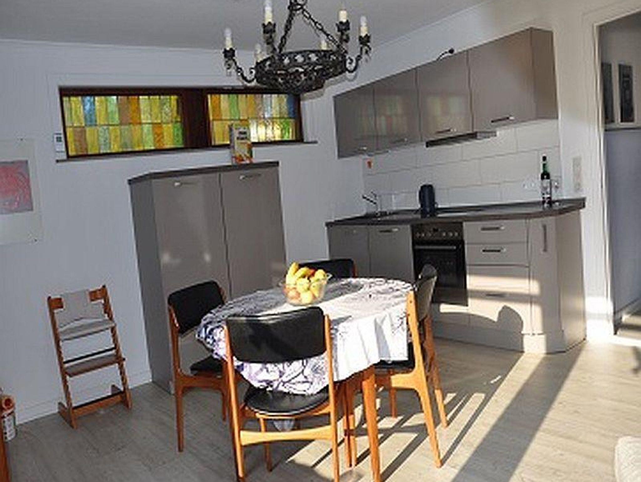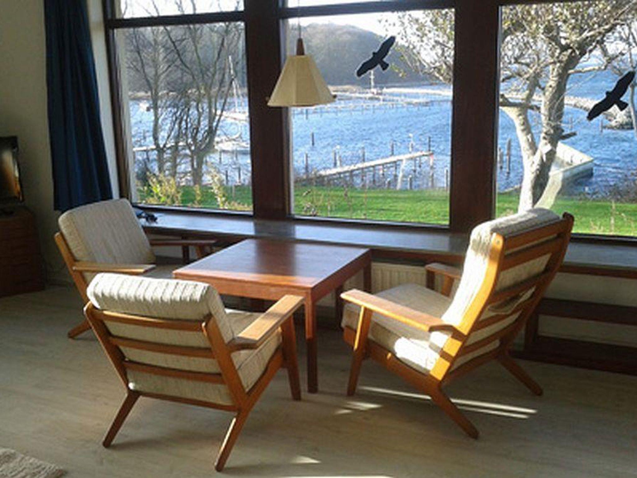 Die ruhig gelegene Ferienwohnung ist die größere (70 qm) von zwei Wohnungen (separate Eingänge) in einem frei stehenden eingeschössigen Haus auf einem 1200 qm großen Grundstück. Vom Wohnzimmer und der Terrasse kann man auf den Yachthafen und über die Flensburger Förde bis nach Dänemark blicken. Der große Garten mit Liegewiese fällt über einen Abhang direkt zum Strand ab.