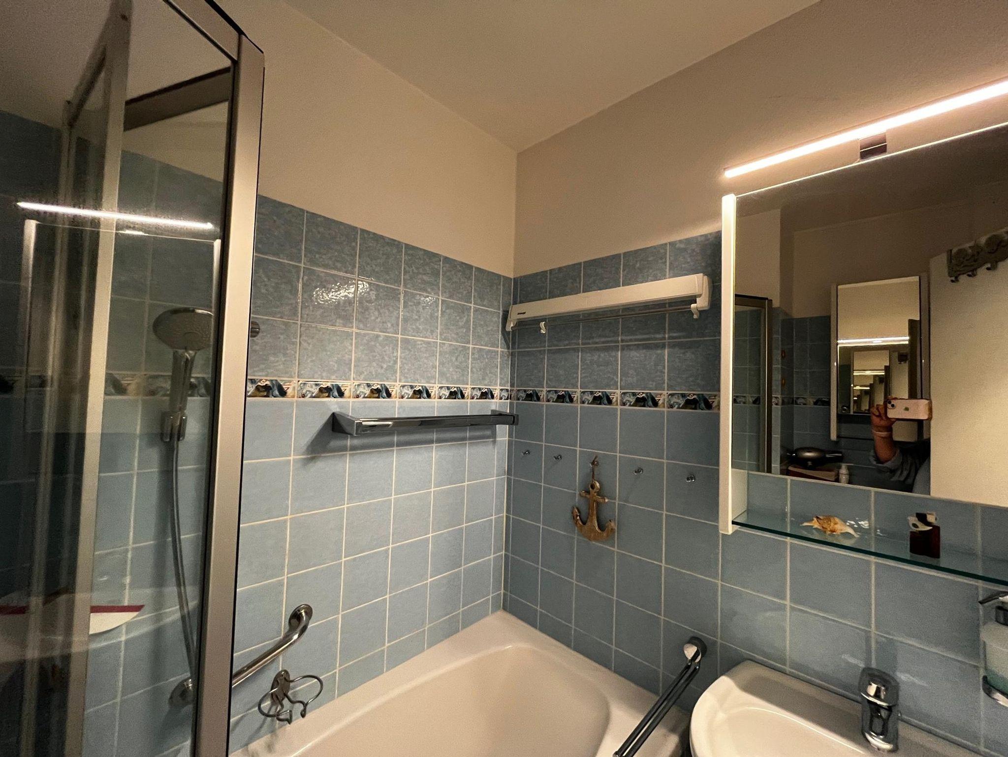 • 1 Badezimmer mit Badewanne/Dusche, Waschbecken, WC