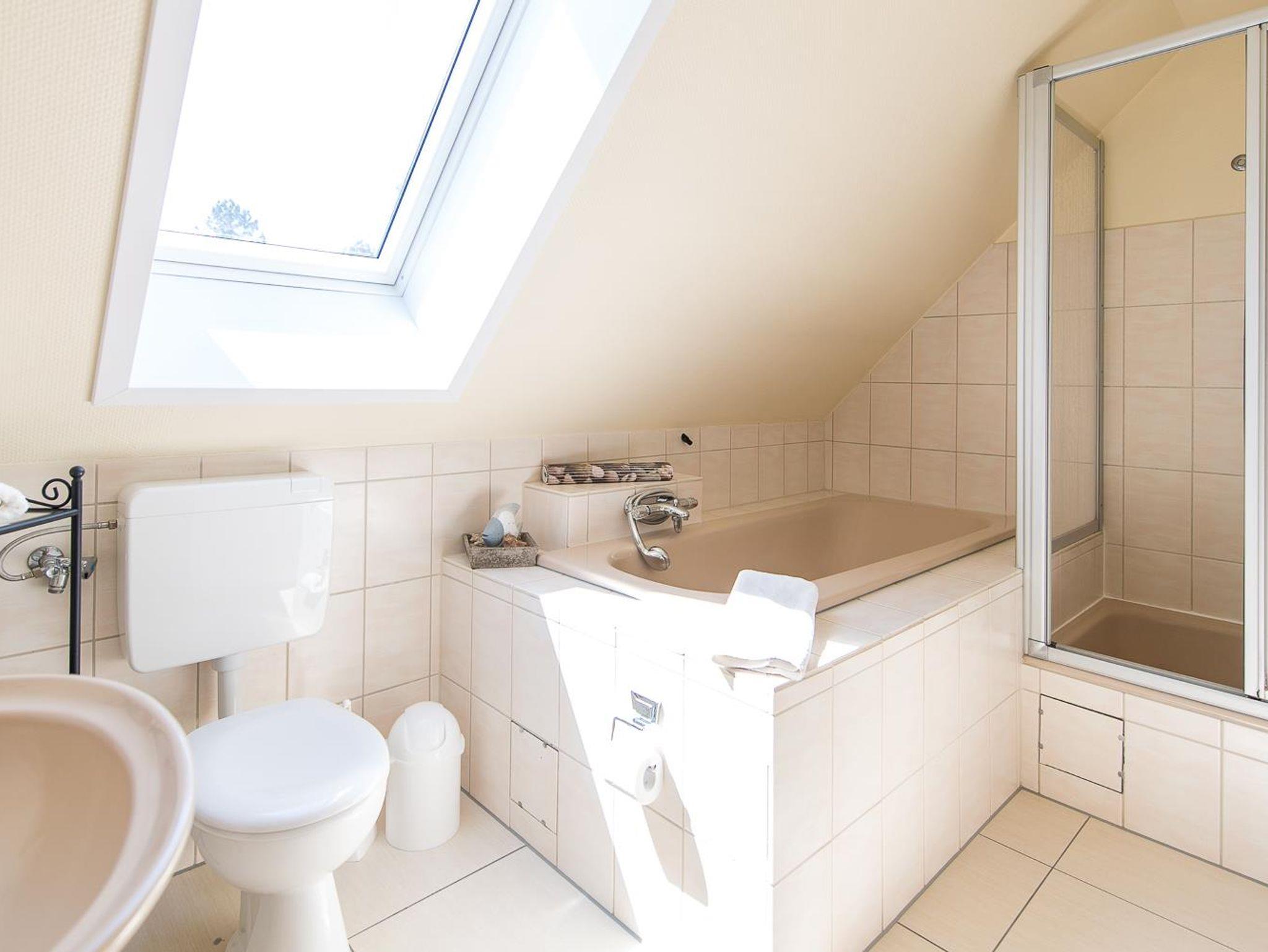 • 1 Badezimmer mit Dusche, Badewanne und WC