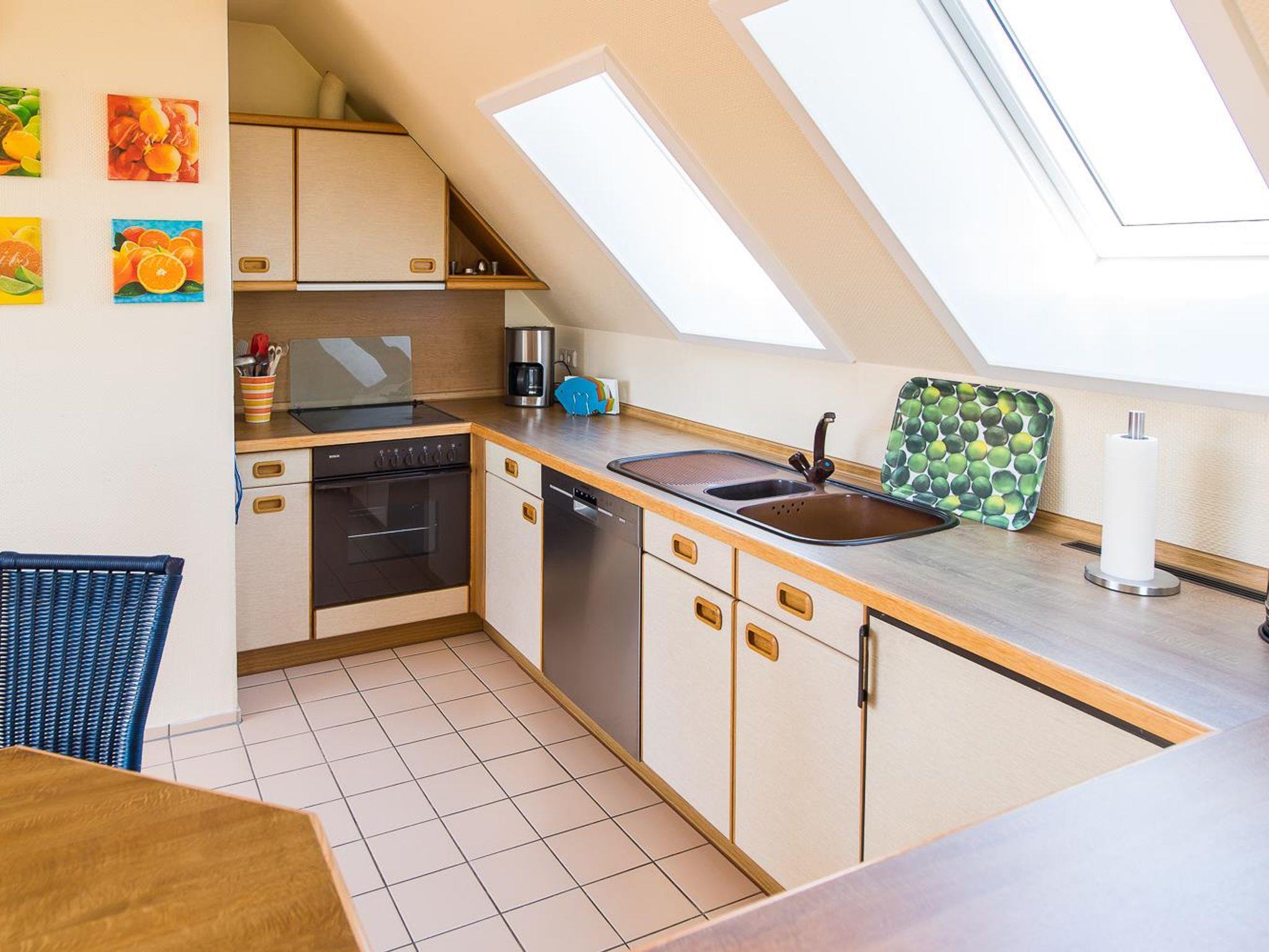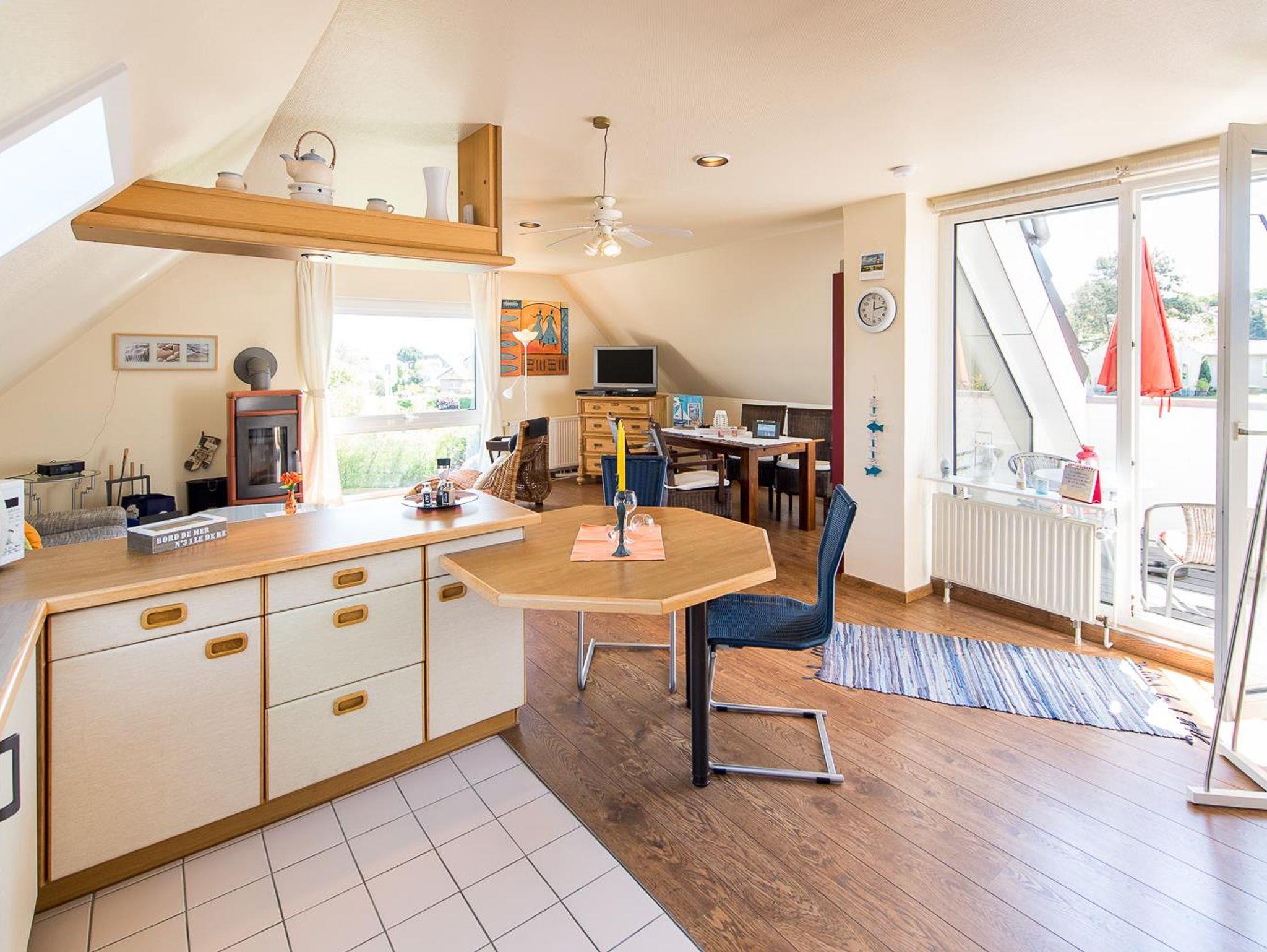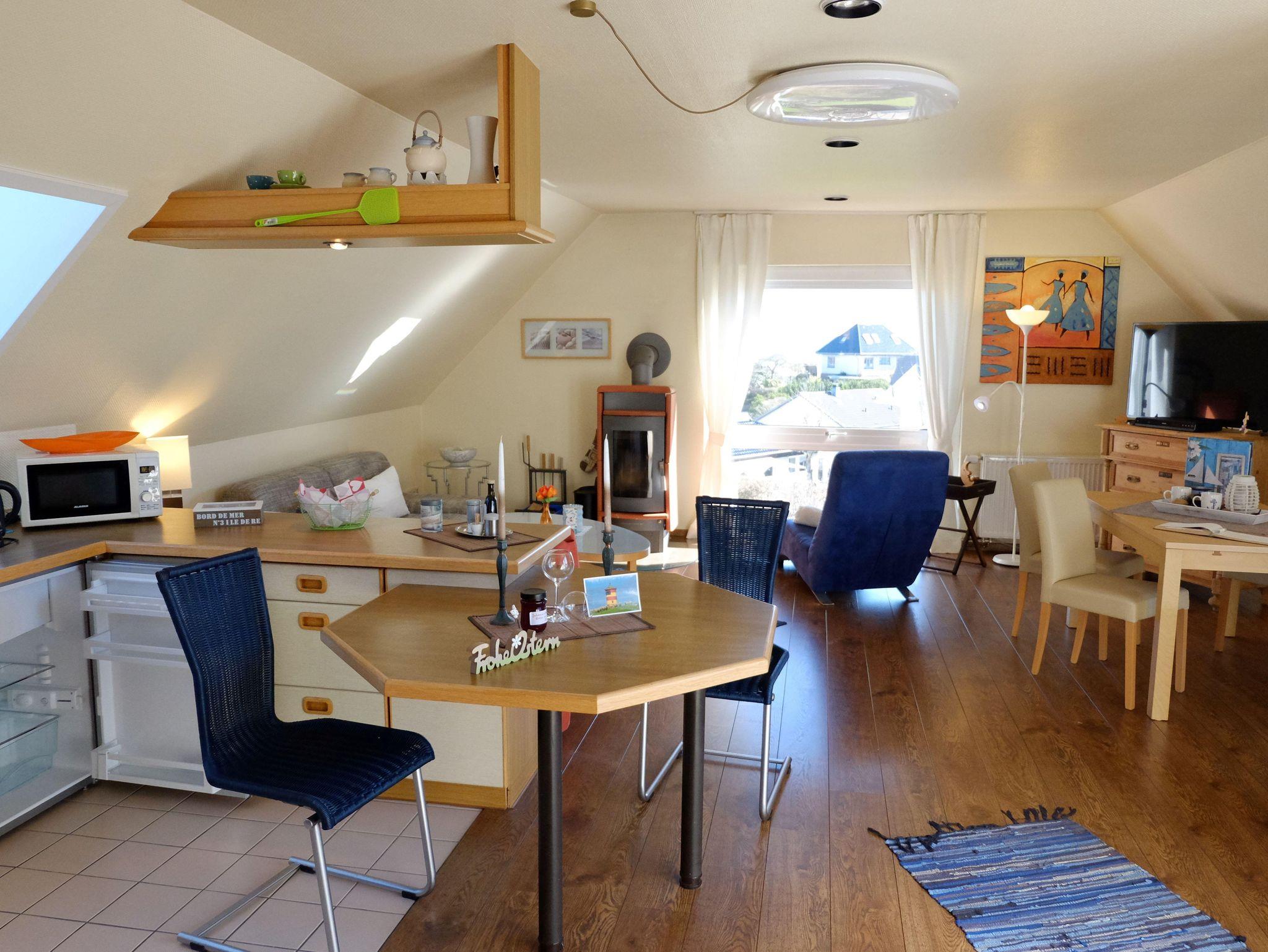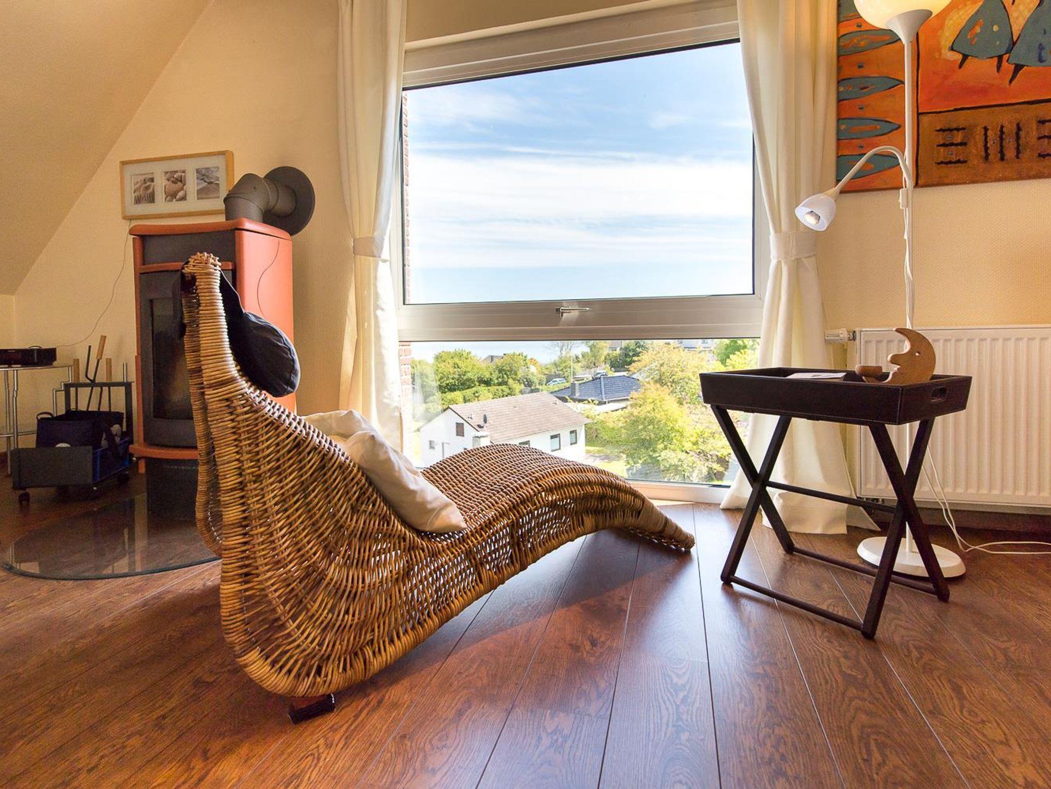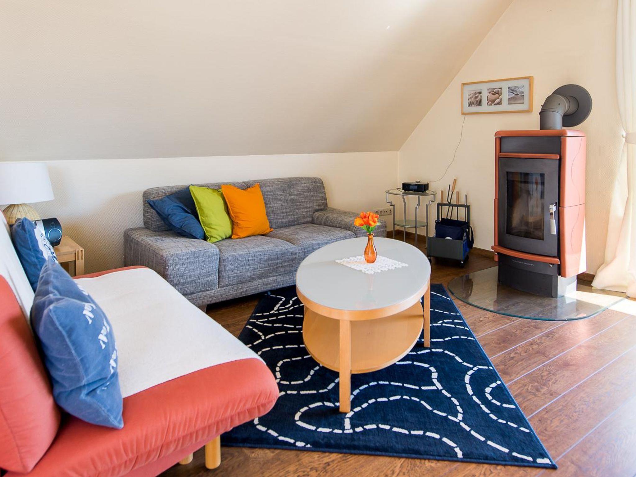• 1 Wohnzimmer mit Schlafcouch (140 x 200cm), Kaminofen, Meerblick, Fernseher, DVD player, Spiele, Bücher für Jund und Alt.