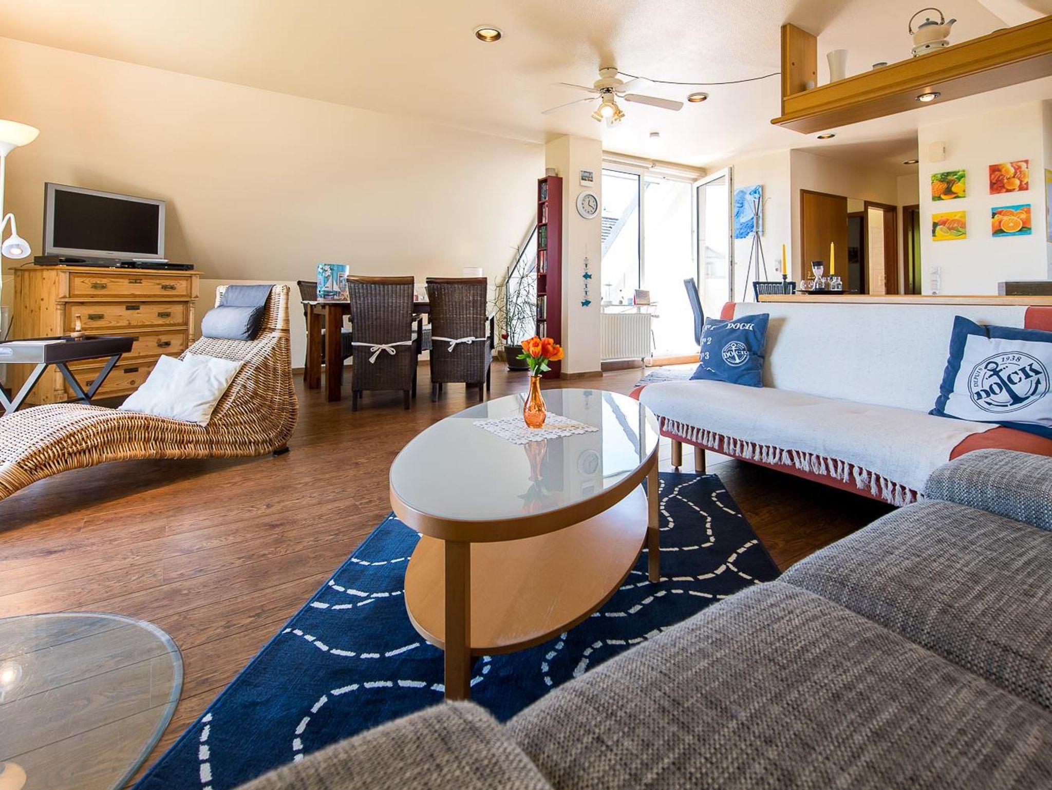Die Ferienwohnung Viola mit Meerblick verfügt über ca. 60m² Wohnraum bei einer Grundfläche von 80m²:
