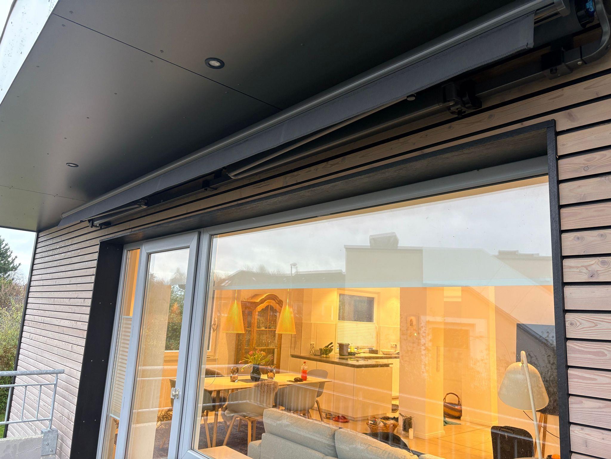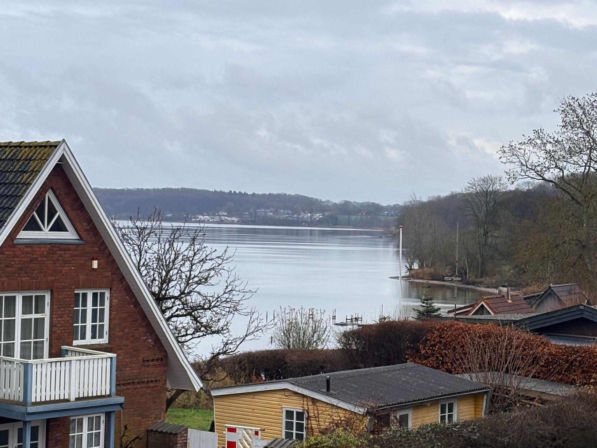 Vom Wohnbereich geht es über eine Terrasse hoch auf die 45m² große Dachterrasse mit Blick auf die Flensburger Förde.