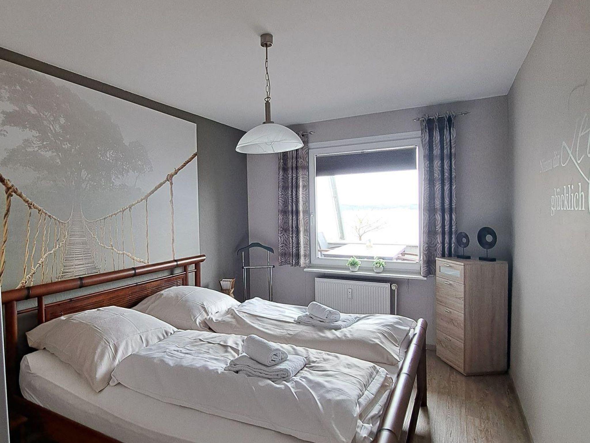 Die Ferienwohnung liegt im Kurzentrum von Glücksburg, direkt am Strand Sandwig in der Wohnanlage Belmar mit Fahrstuhl. Die Wohnung 53 m² ist modern und freundlich ausgestattet und für 3 Personen geeignet. Schlafzimmer mit Doppelbett (King Size) und direkten Meerblick, Wohnzimmer mit einer hochwertigen Schlafcouch und direkten Meerblick. Zugang zur großen möblierten Seeterrasse mit Blick über die Förde nach Dänemark, elektrische Markise und Heizstrahler. WC und Dusche in getrennten Räumen, Einbauküche, Flachbildfernseher mit Harman Sound System, kostenloses WLAN, direkter Zugang zum Strand.