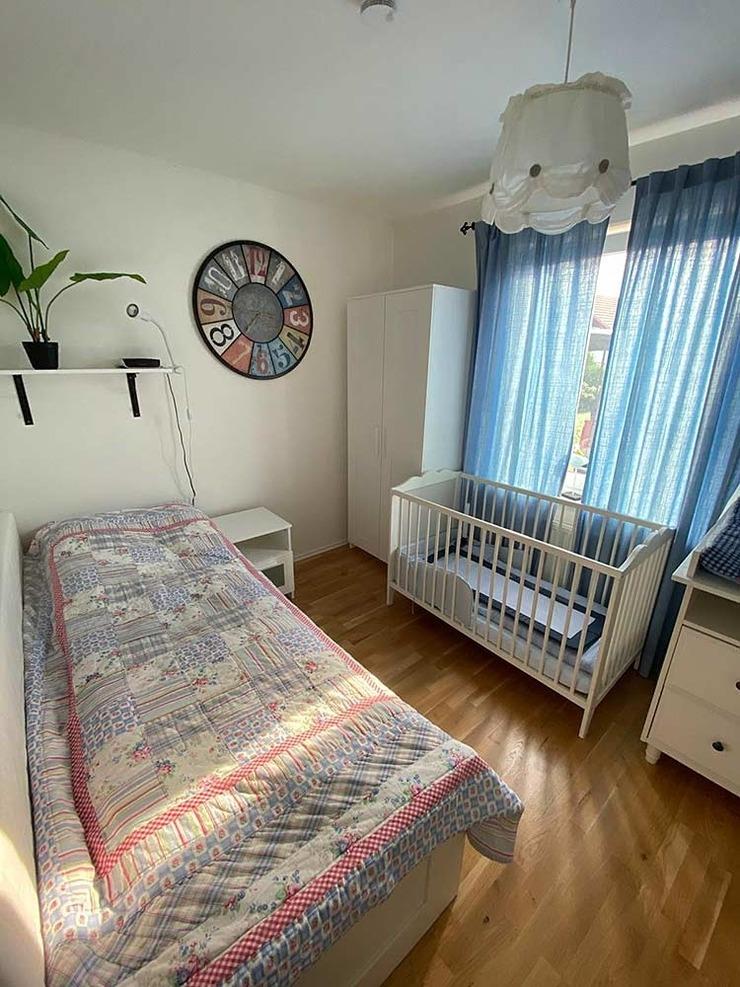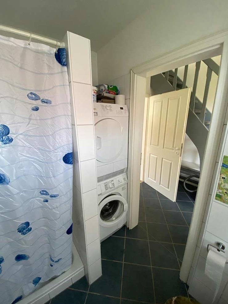 Die durchdachte Raumaufteilung bietet zusätzlichen Komfort: Zwei stilvolle Bäder – ein Vollbad mit Badewanne und ein modernes Duschbad – verhindern morgendlichen Stress und bieten genug Raum für alle Gäste. Waschmaschine und Trockner stehen für längere Aufenthalte ebenfalls zur Verfügung.
