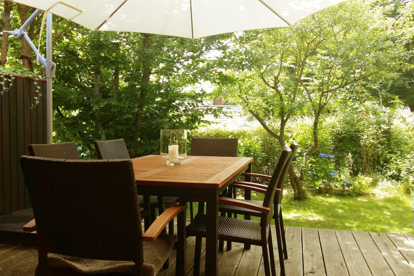 Die einladende Südterrasse mit Gartenmöbeln und einem Grill lädt zu entspannten Stunden im Freien ein. Der angrenzende Garten bietet ausreichend Platz zum Spielen und Verweilen. Genießen Sie Ihre Mahlzeiten im Freien oder entspannen Sie bei einem guten Buch.