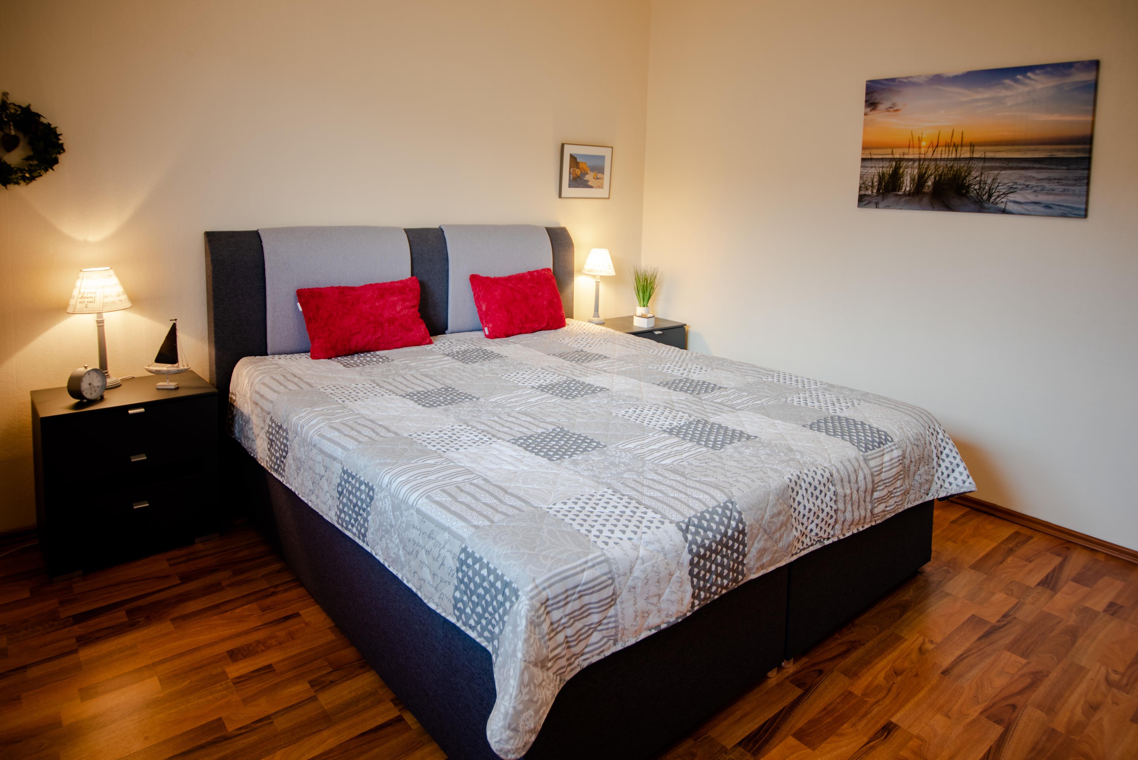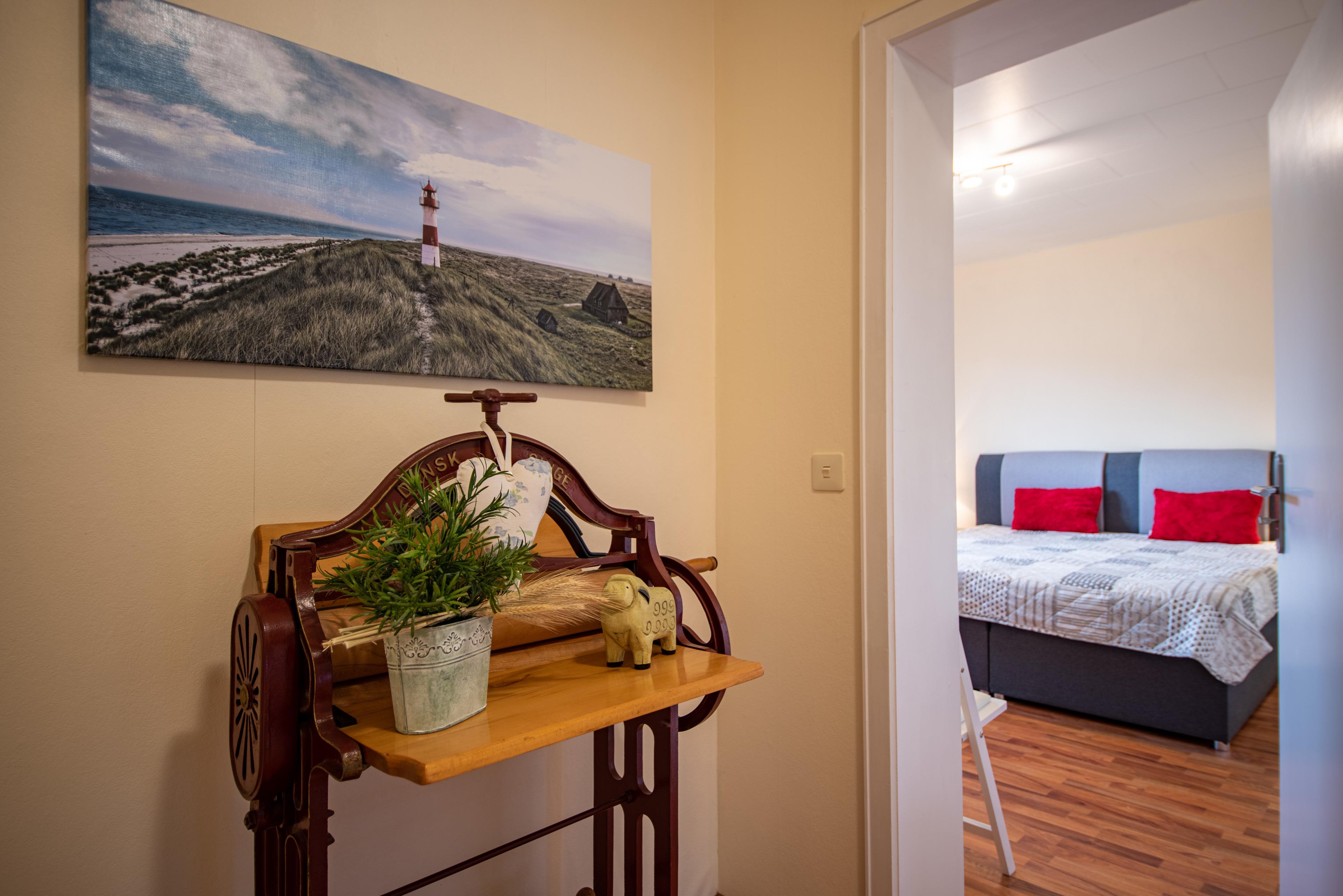 Der Garten ist ein wahres Paradies für Naturliebhaber. Genießen Sie den herrlichen Blick über das Noor bis zur malerischen Außenförde. Lassen Sie die Seele baumeln und finden Sie Ihre innere Ruhe in diesem idyllischen Umfeld. Auf einer großzügigen Wohnfläche von 100 m² verteilt, bietet die Ferienwohnung zwei sich voneinander abhebende Schlafzimmer. Das eine Schlafzimmer ist mit einem komfortablen Doppelbett (180 x 200cm) ausgestattet, während das andere Zimmer über zwei gemütliche Einzelbetten (90x200cm) verfügt. Der moderne Wohlfühlbereich wird durch ein Tageslicht-Bad mit Badewanne und Dusche sowie ein Gäste-WC komplettiert.