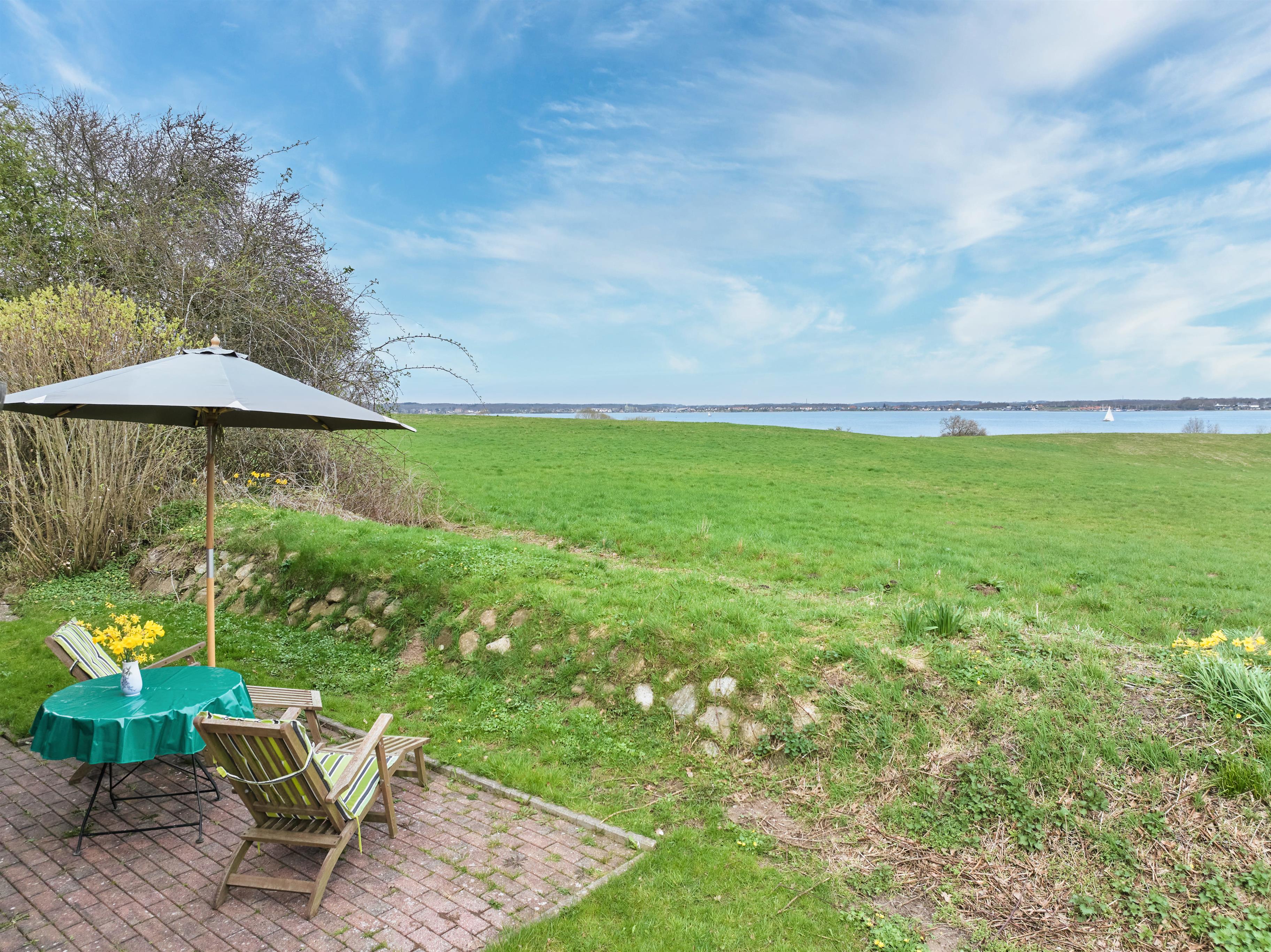 Ein besonderes Highlight des Ferienhauses ist die große Terrasse, die mit Gartenmöbeln für 6 Personen ausgestattet ist. Hier können Sie bei einem Glas Wein den Abend ausklingen lassen, die frische Meeresluft genießen und den Blick über das Naturschutzgebiet und die Förde schweifen lassen. Der weitläufige Garten rund um das Haus lädt zu zahlreichen Aktivitäten im Freien ein – sei es ein entspanntes Sonnenbad, ein Spiel mit den Kindern oder einfach ein Moment der Ruhe, während Sie den Tag beobachten, wie er langsam in der Ferne verschwindet.