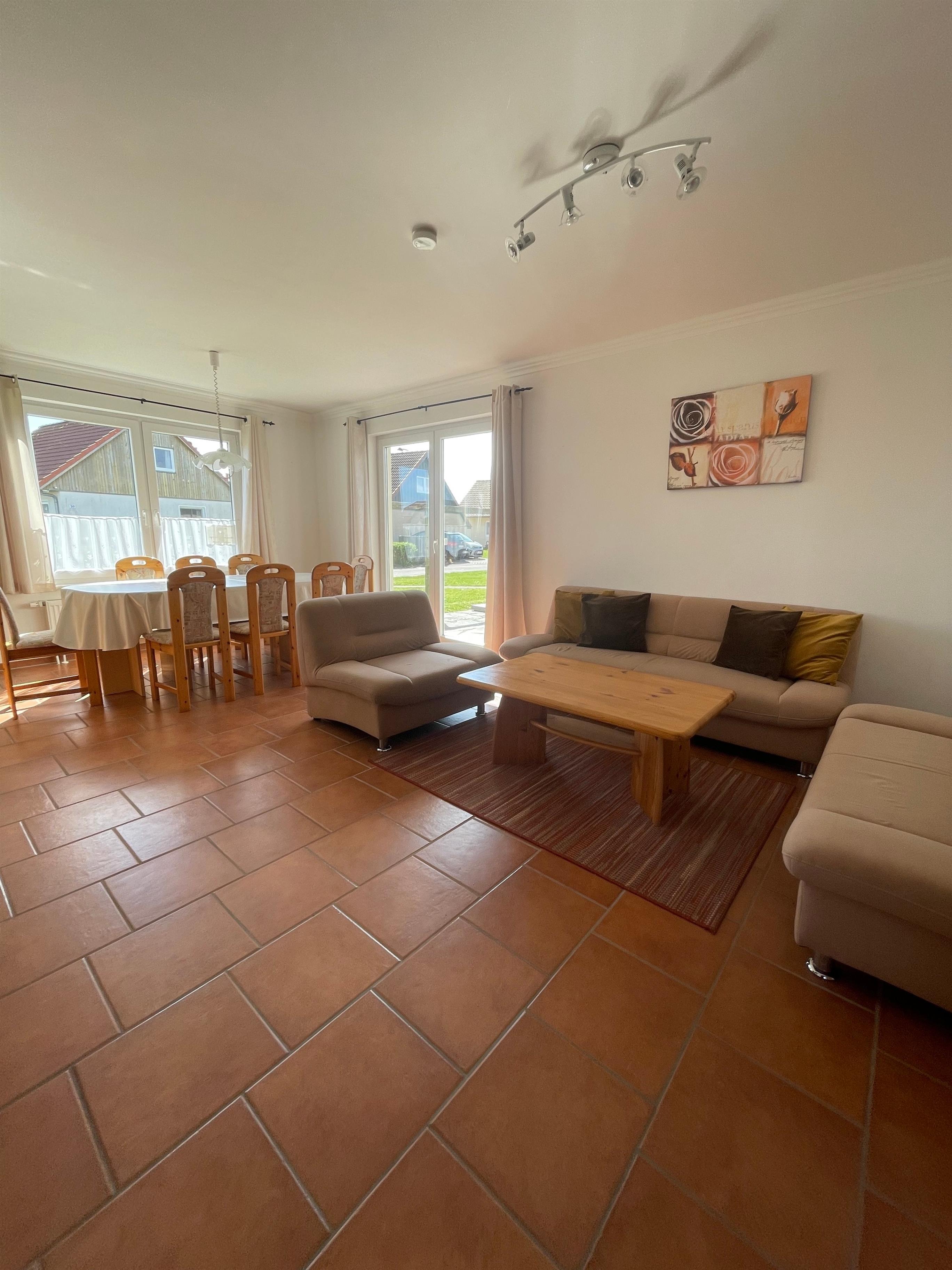 Das Wohnzimmer des Ferienhauses ist großzügig gestaltet und bietet einen perfekten Ort zum Entspannen. Der große LCD-TV mit Satellitenempfang, ein Stereo-Booster-Radio mit USB/Bluetooth/CD/AUX und ein Blu-ray/DVD-Player sorgen für Unterhaltung an den ruhigeren Tagen. Der große, ausziehbare Esstisch ist ideal für gemeinsame Mahlzeiten oder gesellige Runden. In diesem Raum können Sie den Tag Revue passieren lassen und sich auf den nächsten Abenteuer in der Umgebung freuen. Für Internetnutzer ist auch gesorgt: WLAN über Glasfaseranschluss steht im gesamten Haus zur Verfügung.