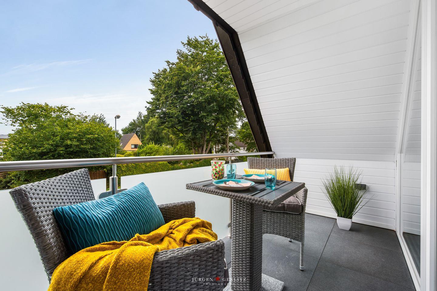 Diese charmante Ferienwohnung befindet sich 1.OG, mit 45 m² bietet Sie Ihnen, neben einem gemütlichen Wohn-Schlafbereich, eine voll ausgestattete Küche & ein Badezimmer mit Dusche. An der Flensburger Förde gelegen, bietet die Wohnung einen erholsamen Urlaub in ruhiger Lage. Der gemütlich gestaltete, mit Flatscreen-TV ausgestattete Wohnraum lädt zum Verweilen ein. Auf dem überdachten Balkon, mit Blick ins Grüne, kann man das Wetter zu jeder Jahreszeit genießen.