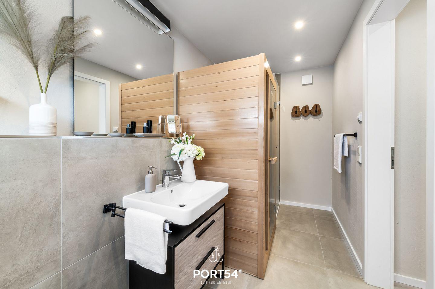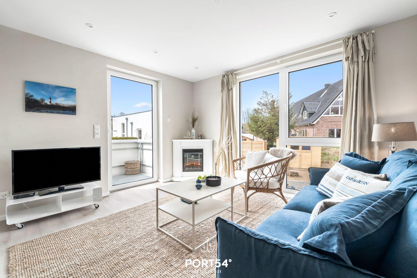 Diese Doppelhaushälfte bietet Ihnen auf knapp 70m² Platz für bis zu 4 Personen. Der großzügige Wohn-/Essbereich, mit angrenzender voll ausgestatteter Küche wirkt, dank der bodentiefen Fenster, zu jeder Tageszeit einladend. Das Schlafzimmer bietet Ihnen ein Doppelbett, sowie einen TV. Weitere Schlafmöglichkeiten bietet Ihnen das Schlafsofa. Das Wellnessbad verfügt über eine ebenerdige Dusche & eine Infrarot-Sauna. Das Highlight ist die Dachterrasse mit traumhaftem Blick auf die Ostsee.