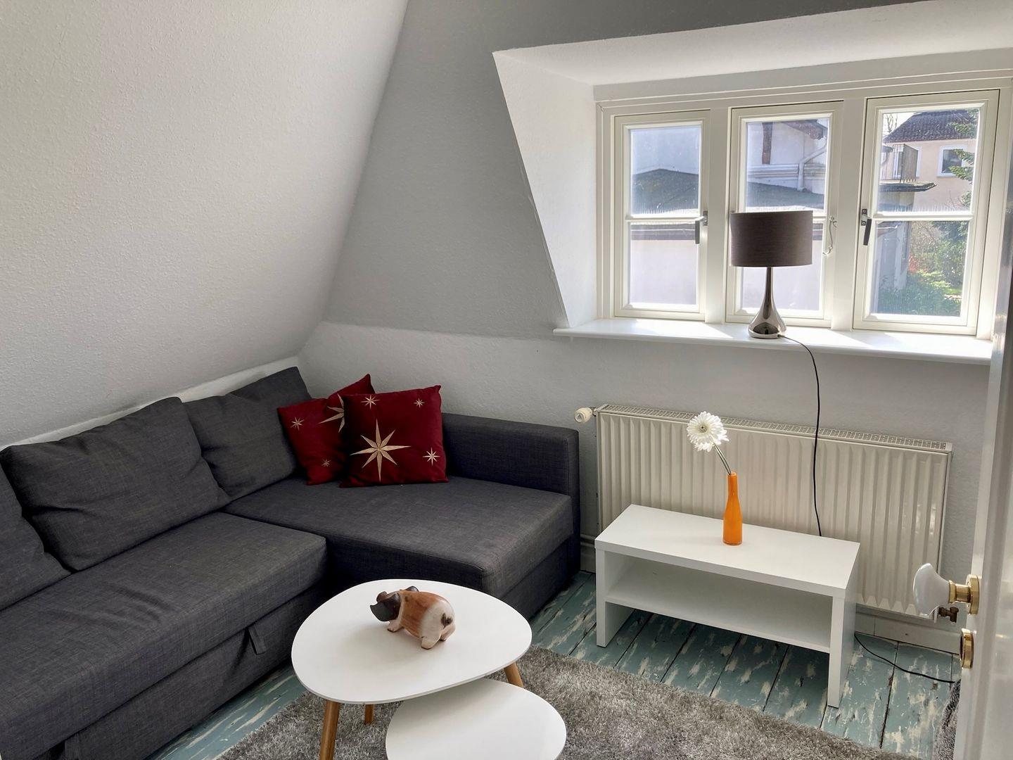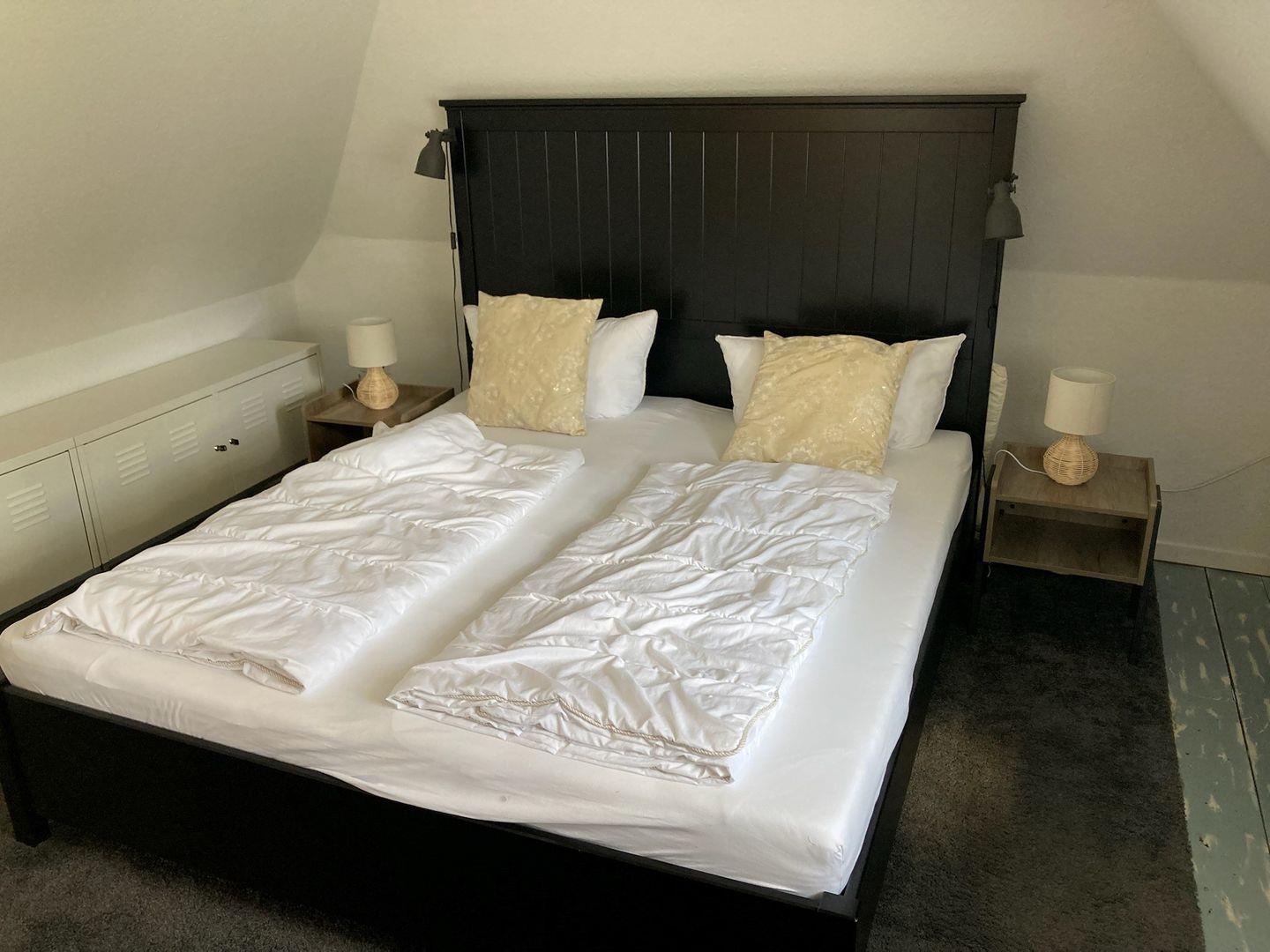 Das "alte Holzfällerhaus" befindet sich unweit vom traumhaften Glücksburger Strand und bietet auf ungefähr 100m² Platz für bis zu fünf Personen. Im Erdgeschoss des freistehenden Ferienhauses befinden sich das Wohnzimmer mit Flachbild-Fernseher, eine voll ausgestattete Küche und ein separates Esszimmer mit erweiterbarem Esstisch und einem Holzofen, der an den kälteren Tagen für eine gemütliche Wärme im Haus sorgt. Das Duschbad im Erdgeschoss verfügt über eine sehr großzügige Dusche (mit hohem Einstieg), einen Kosmetikspiegel und eine Waschmaschine. Im Abstellraum finden Sie einen Wäscheständer und einen Staubsauger. Das Schlafzimmer im Erdgeschoss ist mit einem Doppelbett (180x200cm), einem Kleiderschrank und einem Schreibtisch ausgestattet. Für die Kleinen sind ein Kinderhochstuhl und ein Kinderreisebett vorhanden. Im Flur gelangen Sie über Sie über eine steile Treppe ins Obergeschoss und befinden sich direkt im zweiten Schlafzimmer. In dem offenen Galerie-ähnlichem Raum befindet sich ein Doppelbett (180x200cm) und Kommoden, zudem haben Sie einen tollen Blick in den Garten. Hier befinden sich auch die Gesellschaftsspiele und Bücher. Ein weiterer Wohnraum mit Schlafsofa und ein Gäste-WC sind ebenfalls im Obergeschoss untergebracht. Ein Hund darf Sie gern begleiten. Im eingezäunten Garten ist für Hund und Kind viel Platz zum Toben und Spielen - auch ein Fußballtor ist vorhanden. Auf der geschützten Terrasse können Sie hervorragend auf den Gartenmöbeln und den Sonnenliegen Ihren Urlaub genießen. Ihre Fahrräder können Sie in einem offenen und sichtgeschützten Unterstand im Garten abstellen. Für Ihren PKW befindet sich gegenüber ein kleiner öffentlicher Parkstreifen, daneben befindet sich ein öffentlicher Spielplatz.