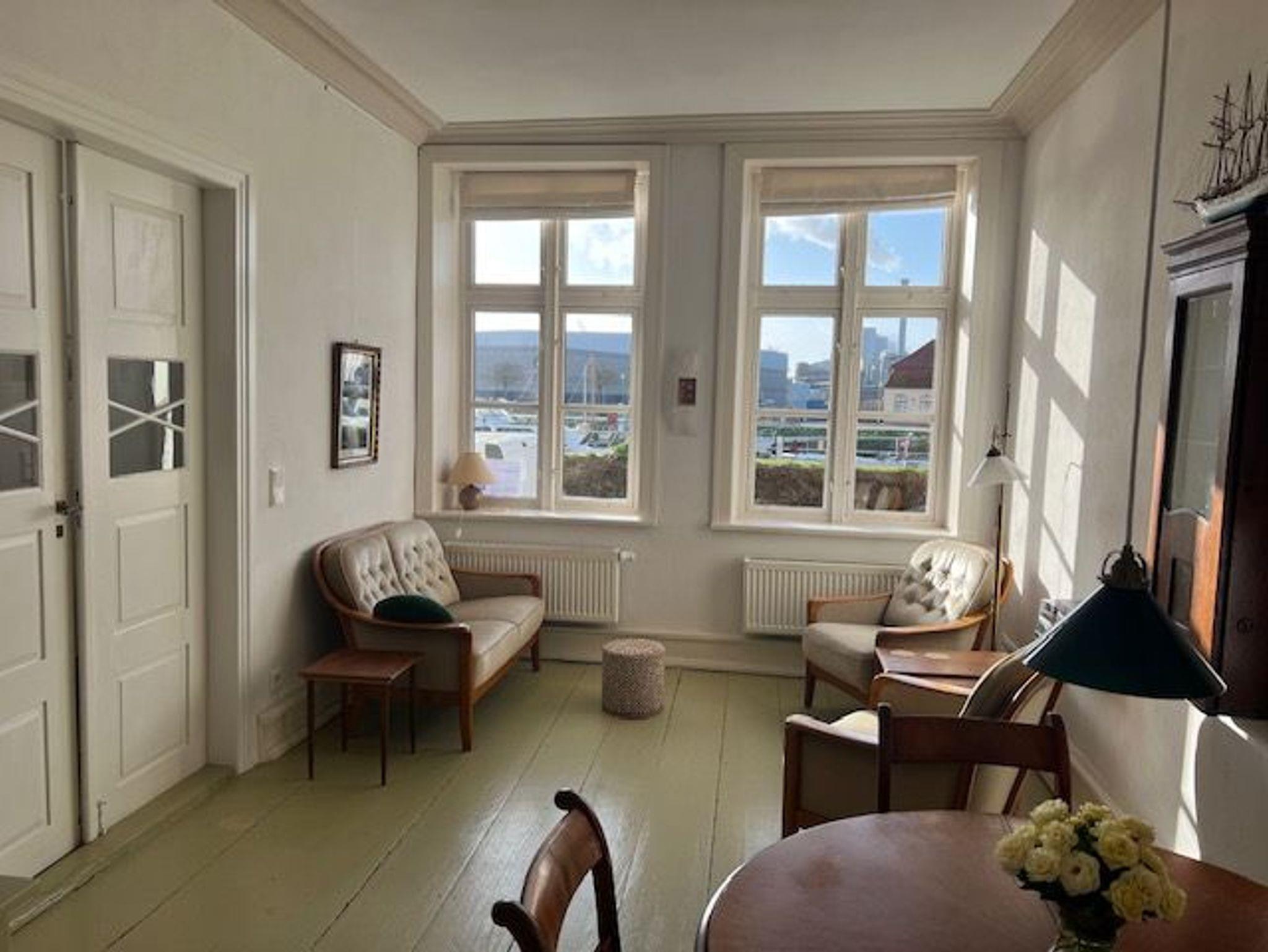 Sie mieten ca. 70 qm im Hochparterre verteilt über Wohn-/Esszimmer, Schlafzimmer, wohnliche Küche, XL-Duschbad und eine grosszügige Diele. Grosse Fenster, alte, doppelflügelige Türen und originale Dielenböden in allen Räumen . Geniessen Sie den malerischen Blick auf Wasser, Segelbotte