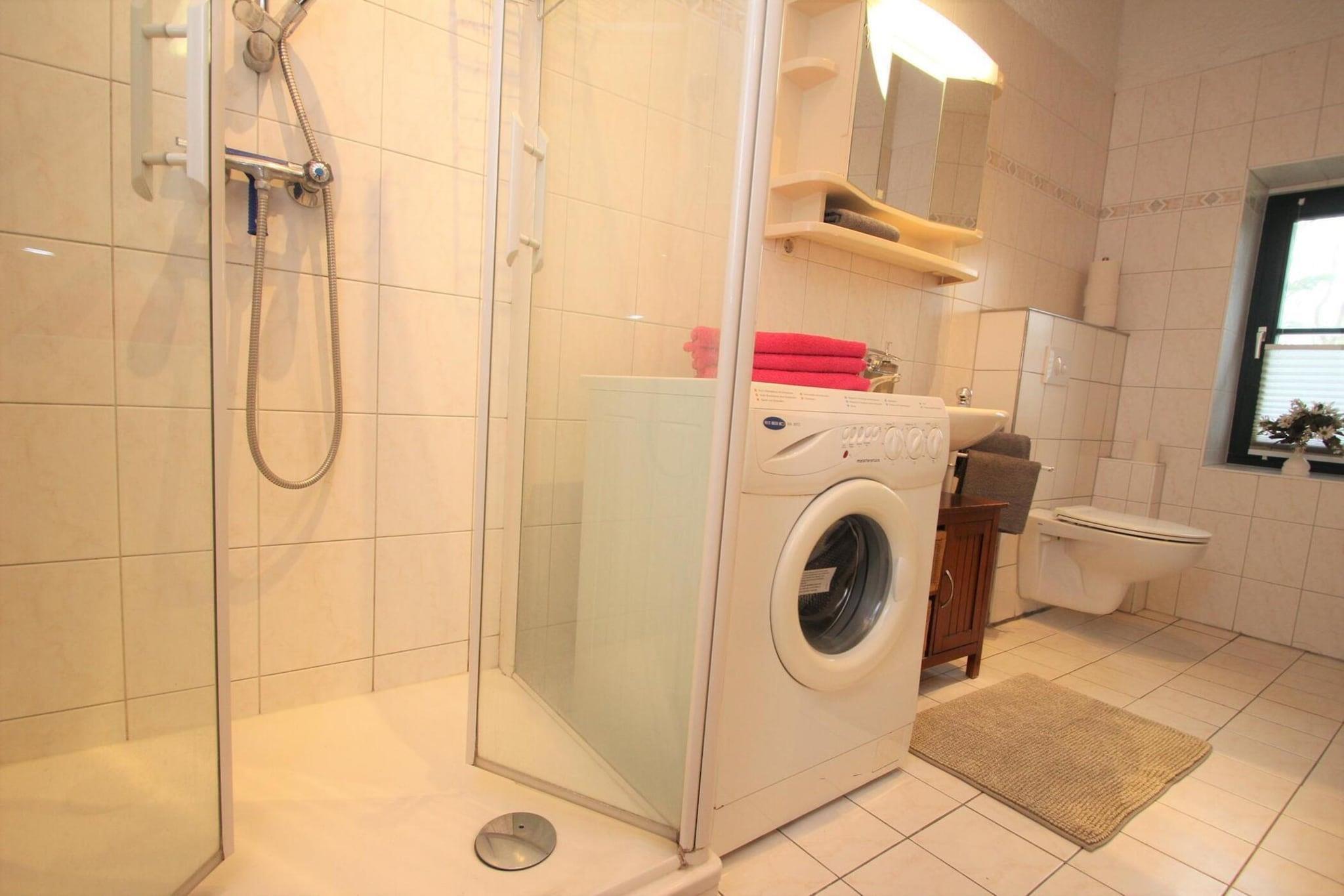 Rustikt hus med pejs i et roligt område ved Krakower See. I et boligområde i udkanten af landsbyen midt i naturreservatet Nossentiner Heide, kun 150 meter fra Kraków-søen, ligger dobbelthuset, delvist indrettet i jagtstil, med 1.000 kvadratmeter indhegnet grund. Når du kommer tilbage fra en af dine udflugter, kan du slappe af på den store solterrasse. Glave ligger i den sydøstlige udkant af Krakower Obersee i naturreservatet Nossentiner / Schwinzer Heide. Havørne, fiskeørne og bitter yngler i naturparken med 60 søer og floder, og der opdrættes også bisoner på Damerower Werder. Krakau am See ligger knap ti kilometer væk, og Waren an der Müritz ligger 48 kilometer væk. Aktiviteter i nærheden: Krakow-søen er et paradis for vandfugle. Omkring 300 kilometer cykel- og vandrestier og 160 kilometer ridestier giver de bedste betingelser for at udforske naturen uden bil. Udflugtstips: Waren an der Müritz, Plau am See eller hansestaden Rostock Mobility: Ikke egnet til personer med nedsat mobilitet