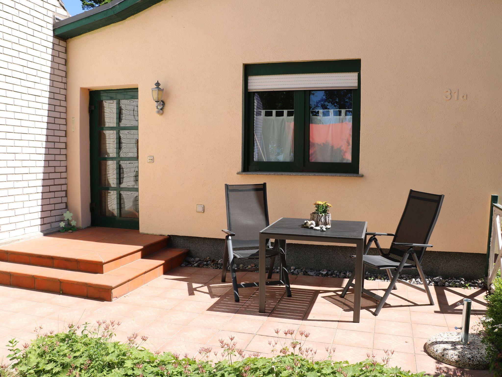 Die zwei Ferienappartements liegen direkt beieinander, angrenzend an den Garten: die 'Wohnung Bodden' mit Blick auf das Wasser und 'Wohnung Garten', direkt dahinter landeinwärts gelegen, jeweils mit eigener Terrasse und Sitzmöglichkeit. Jedes Appartement ist optimal für bis zu 2 Personen, eine dritte Schlafmöglichkeit besteht im Wohnraum durch ausziehbare Schlafcouch.