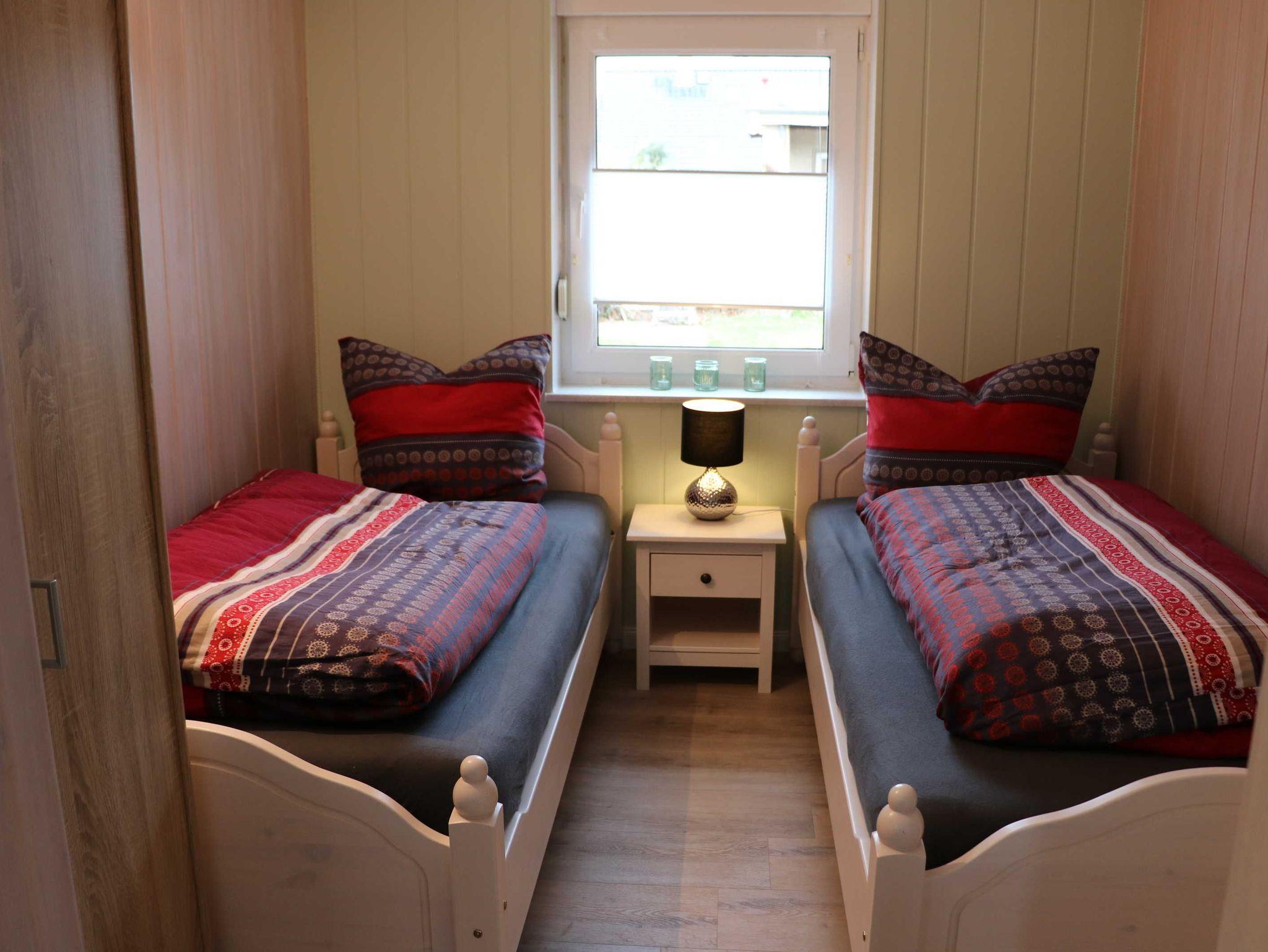 Das separate Schlafzimmer befindet sich direkt nebenan, Fenster mit Insektenschutz.