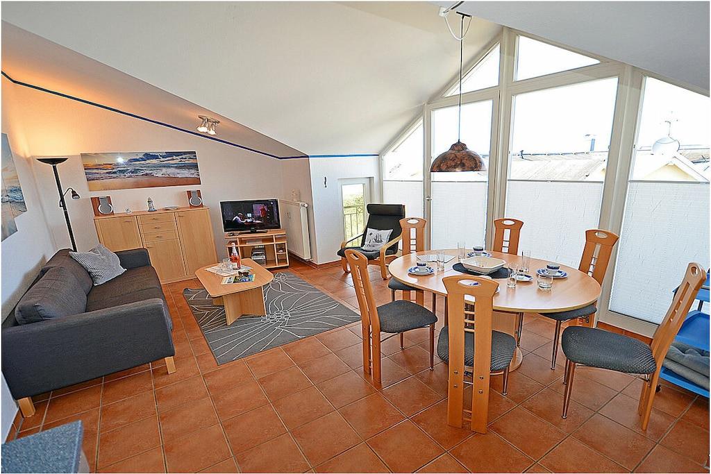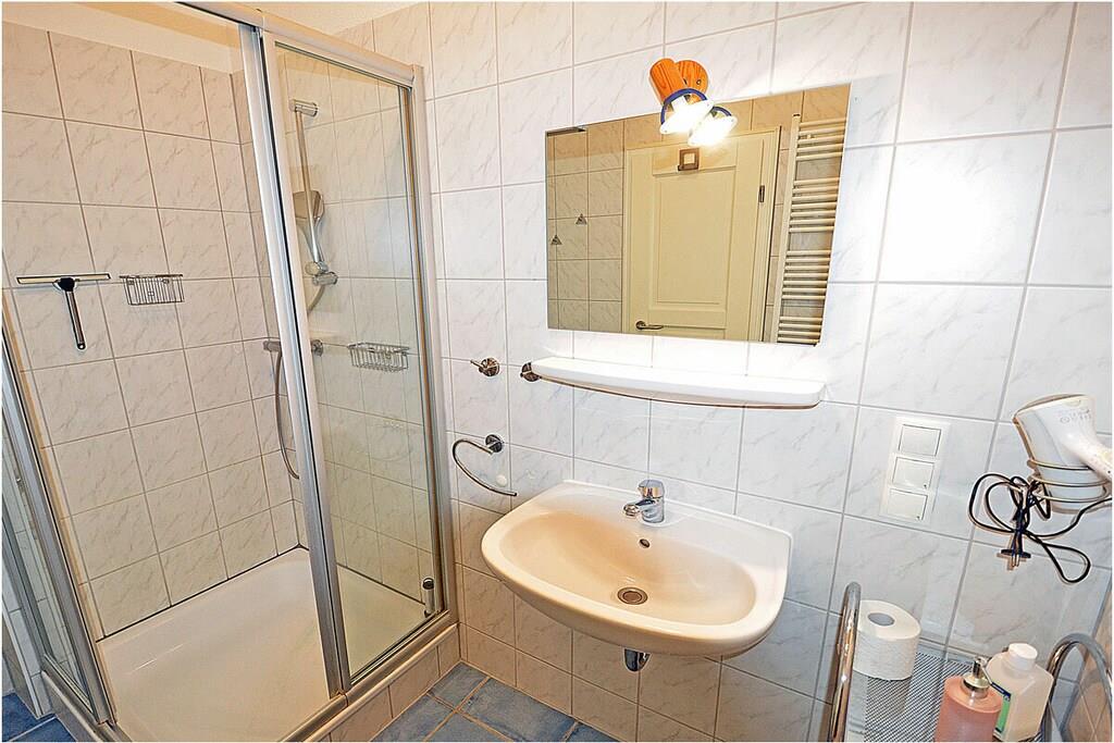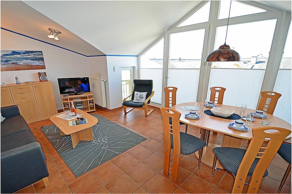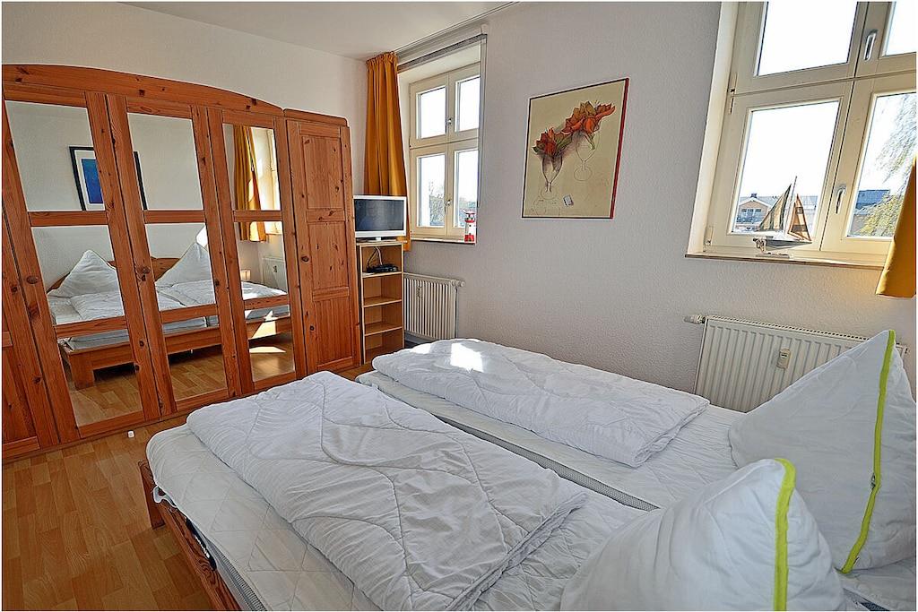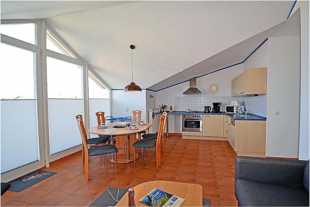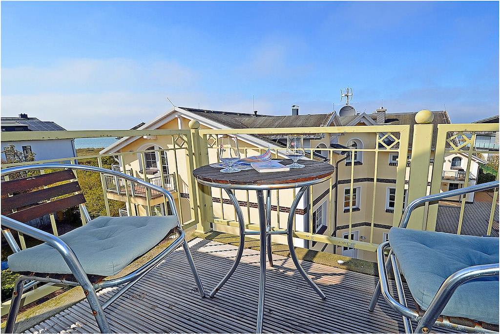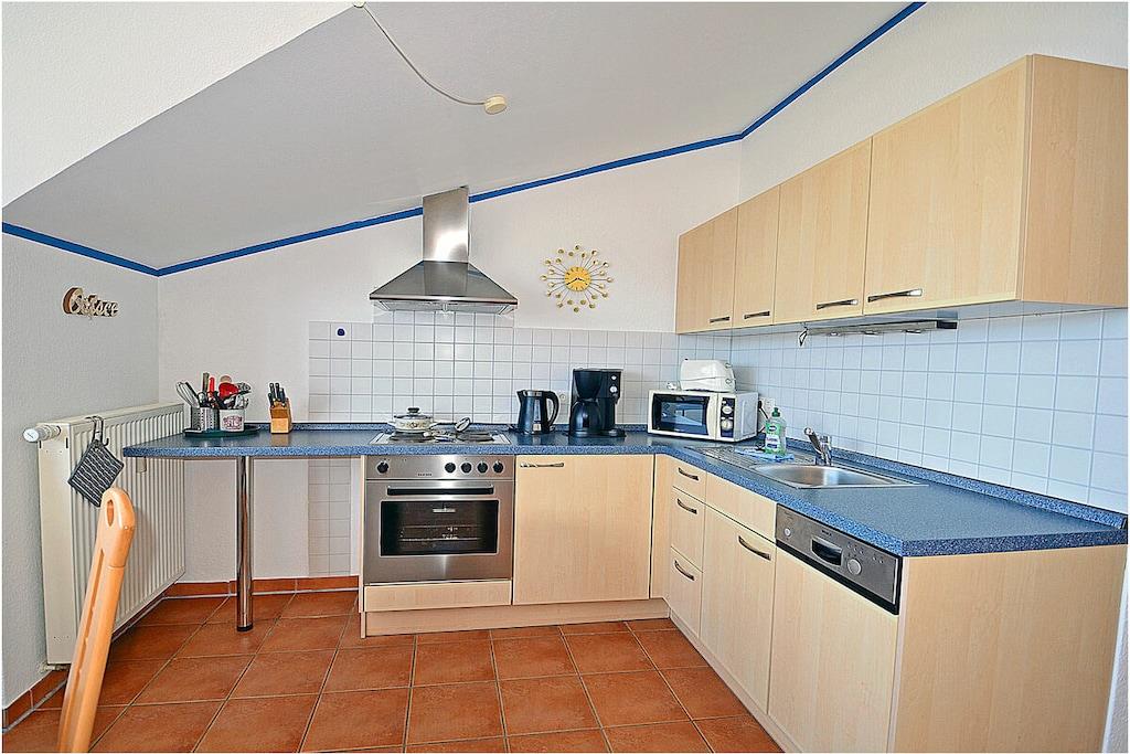 Erholungsort Glowe, 2. Etage, direkt am Ostseestrand mit Meerblick Wohn- und Esszimmer: Sitzecke und bequeme Couch, TV/ Sat (Flatscreen), Radio/ CD, komplett ausgestattete offene Einbauküche mit 4- Plattenherd, Backofen, Kühlschrank, Mikrowelle, Toaster, Wasserkocher, Kaffeemaschine, Geschirrspüler, Essecke und diversen Elektrogeräten, 1. Schlafzimmer mit Doppelbett, großem Kleiderschrank und TV, 2. Schlafzimmer mit Etagenbett und Einzelbett, Bad mit Dusche/WC, Fön und Fußbodenheizung, Balkon mit Gartenmöbel, Grillmöglichkeit besteht (Grillplatz) “komfortables Wohnen mit Blick zur Ostsee” Direkter Promenaden- / Strandzugang, PKW-Stellplatz direkt am Haus, ein Kinderreisebett vorhanden, Einkaufsmöglichkeiten und Restaurants in unmittelbarer Nähe, ca 200 m zum Jachthafen Glowe, ca. 100m zum Bäcker, Fahrradabstellraum, Haustiere nicht erwünscht