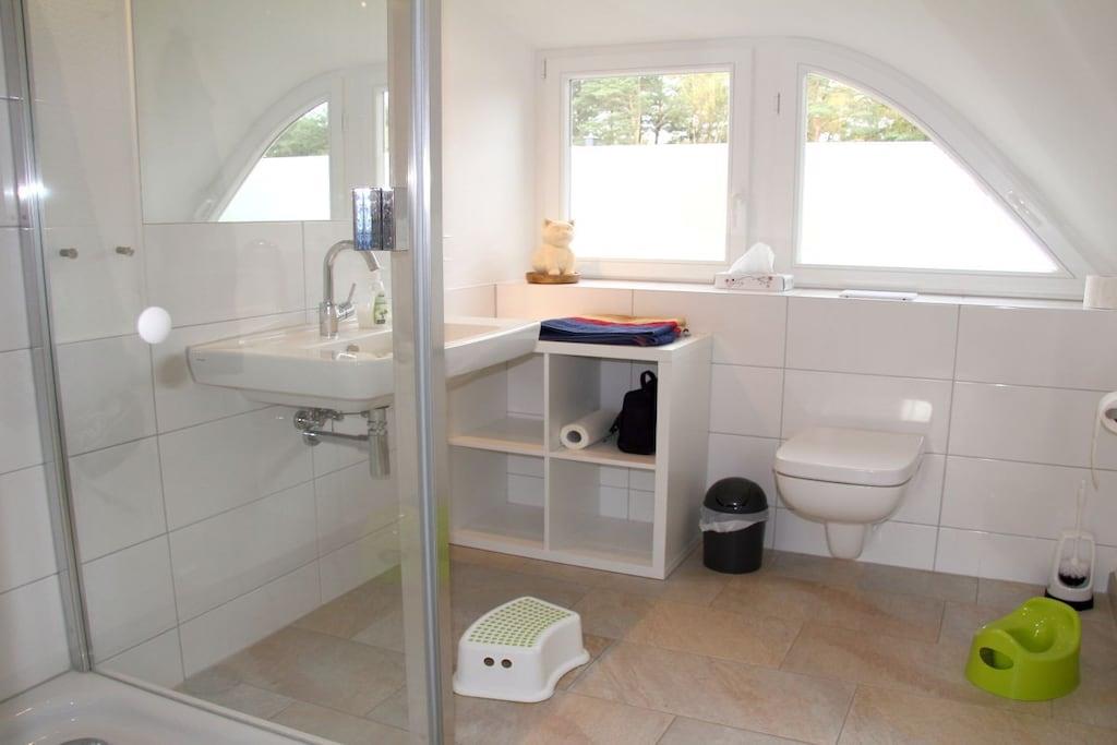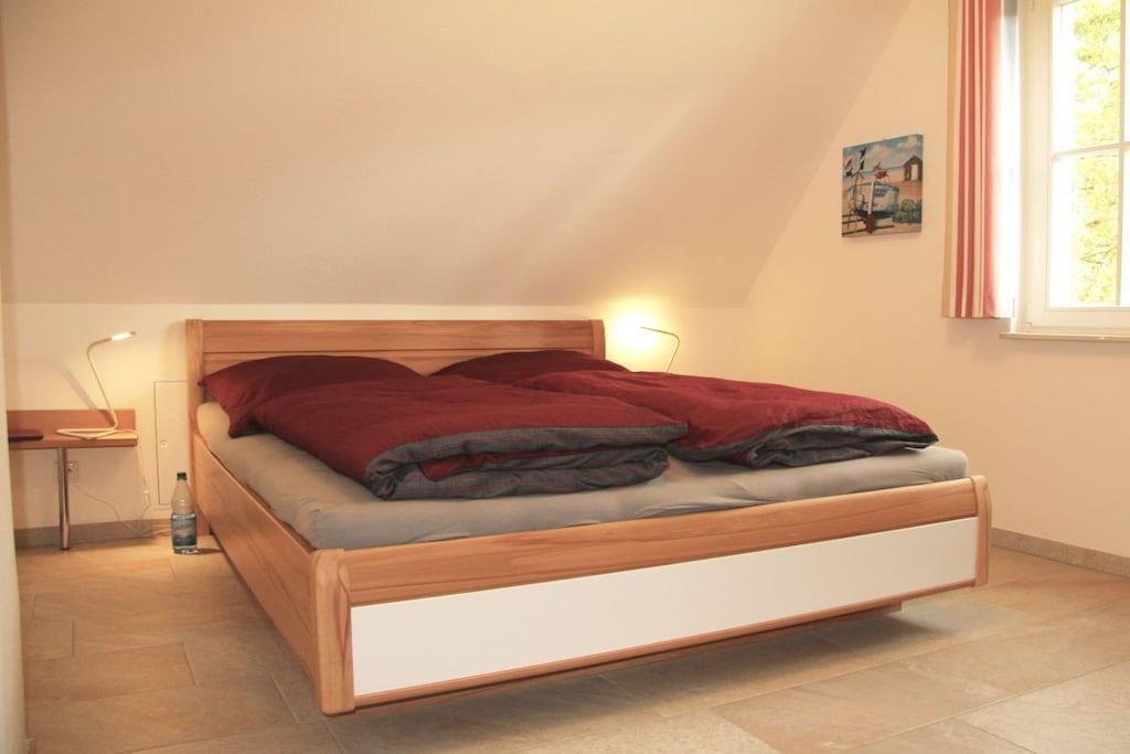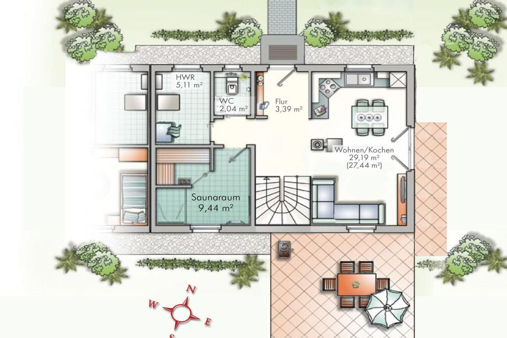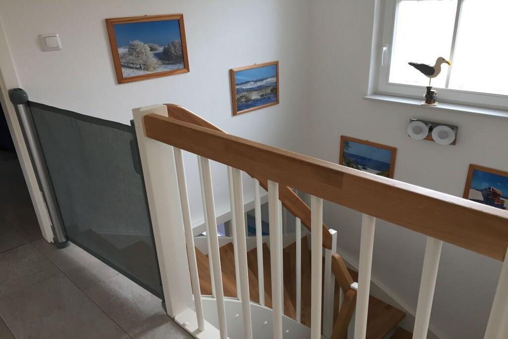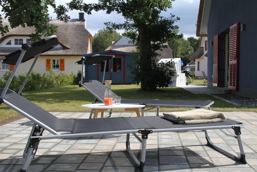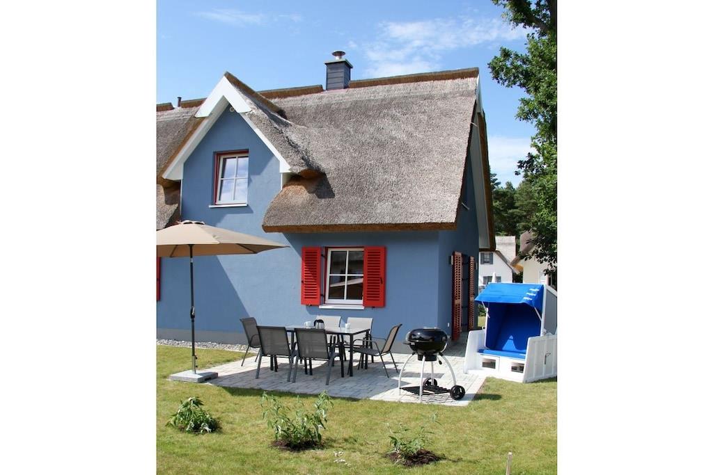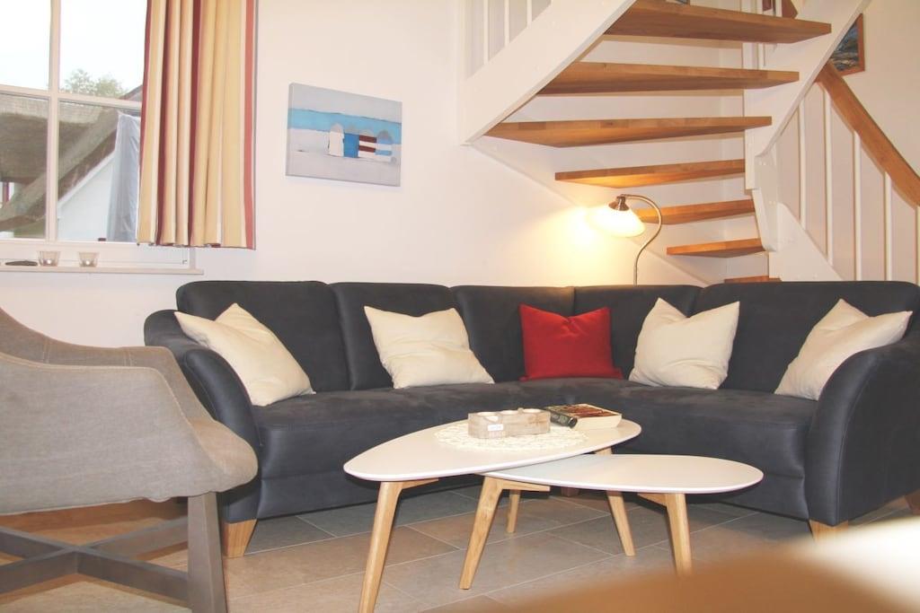 Komfortable Reetdachhaushälfte mit Sauna und Kaminofen, 86 qm Wohnfläche, 2015 neu erbaut. Nichtraucherhaus. Gehobene Ausstattung mit moderner, geschmackvoller Einrichtung. Kostenloser Internetzugang (W-Lan). Fußbodenheizung. Terrasse mit Sitzmöbeln, Grill. Schöner umzäunter Garten. Gartenhaus und Fahrradabstellplatz, Bollerwagen, Pkw-Stellplatz am Haus. 3-Zimmer über 2 Etagen. Parterre: Gemütlicher Wohn-/Essraum mit Kaminofen, Couchgarnitur , Sat-TV, DVD, Radio-CD, Esstisch, sehr gut ausgestattete Einbauküche (Herd, Backofen, Spülmaschine jeweils von Miele, Kühlschrank). Saunaraum mit Dusche. Separates WC. Abstellraum mit Waschmaschine und Trockner. 1. Etage: 2 Schlafzimmer mit je 1 Doppelbett und 1 Schlafcouch, jeweils mit Sat. TV. Modernes Badezimmer. Nachhaltigkeit: Das Haus wird mit einer Wärmepumpe beheizt. Wir beziehen ausschließlich Ökostrom (Greenplanet Energy). Das Haus ist sehr gut gedämmt. Es ist CO2-neutral. Mülltrennung.