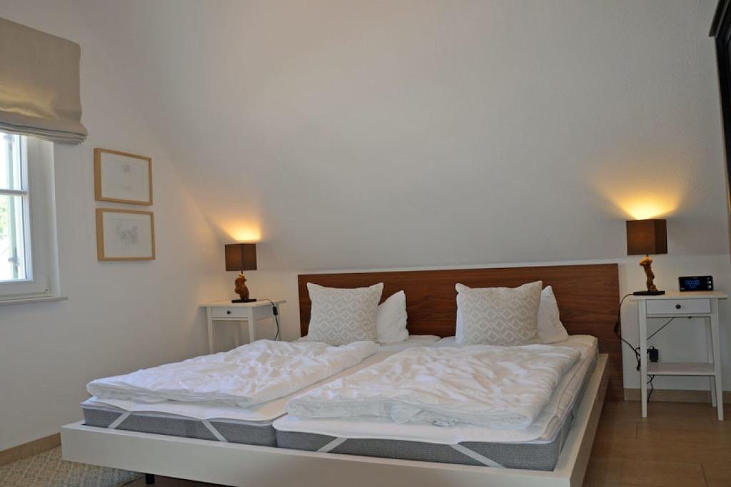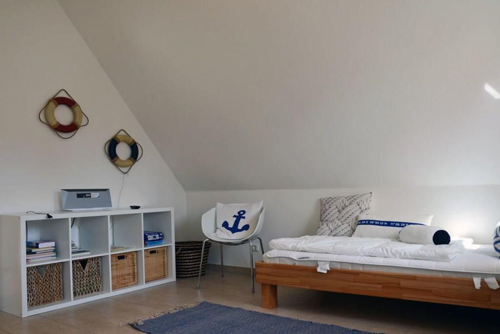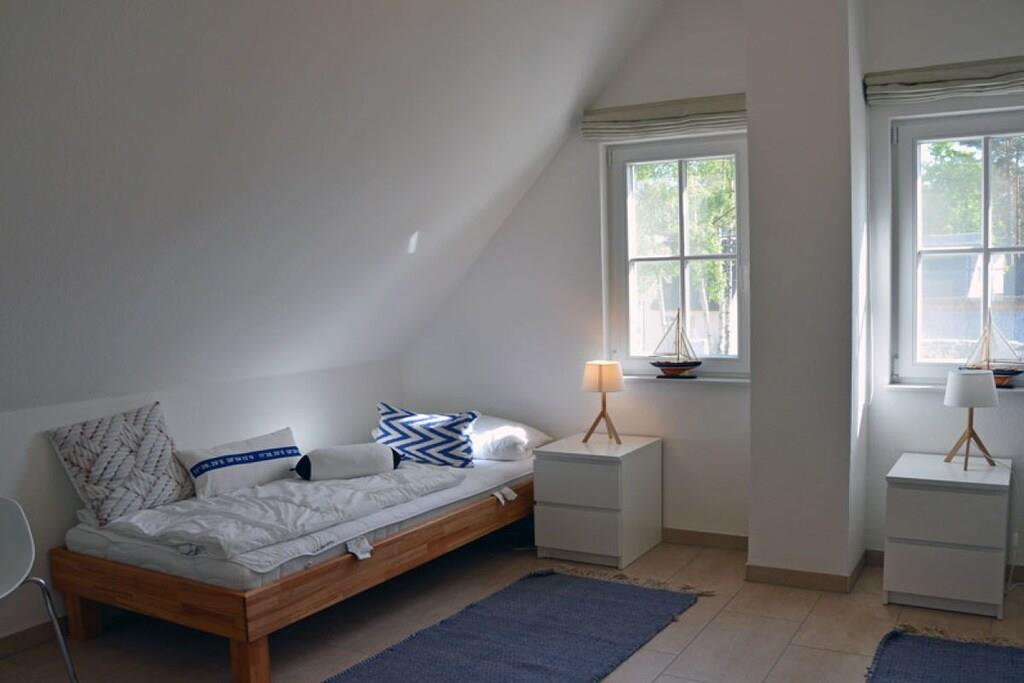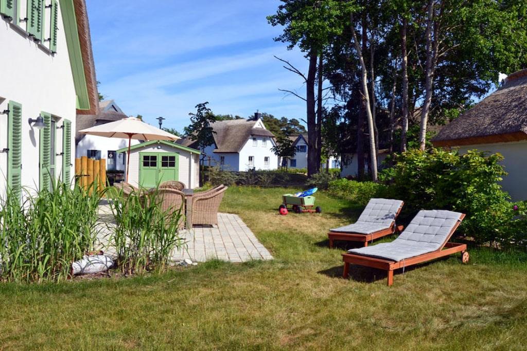 Erholungsort Glowe, über 2 Etagen, ruhige Lage, ca. 300 m zum 8 km langen Sandstrand Schaabe, ca. 1 km zum Bodden Erdgeschoss: sonnendurchfluteter Wohnraum mit Fußbodenheizung, gemütlicher Sitzecke und Kaminofen, offene Küche und großer Esstisch mit Sitzgelegenheiten für 6 Personen, Sauna Bad mit WC und Dusche, Hauswirtschaftsraum, Flur und große Terrasse mit abgegrenztem Garten. Ausstattung: Küchenzeile: Geschirrspüler, 4 Platten Ceranherd mit Backofen, Kühl- und Gefrierschrank, Mikrowelle, Espressomaschine, Wasserkocher, Toaster und Kaffeemaschine Technik: 1x Flat TV Sat, DVD Player/ Blue Ray, HiFi Anlage mit Air Play, CD Radio, Internet/WLAN, Waschmaschine, 2x Föhn Obergeschoss: 2 geräumige Schlafzimmer für bis zu 4 Erwachsene. In jedem Schlafzimmer besteht die Möglichkeit ein Kinderreisebett aufzustellen. 1 Schlafzimmer mit Doppelbett (180x200), zweites Schlafzimmer mit 2 Einzelbetten (90x200), die auch als Doppelbett gestellt werden können. Hochwertiges Bad mit Badewanne und Dusche Kindgerecht:Kinderreisebett mit Matratze sowie 2 Tripp Trapp im Haus vorhanden, Babyphone vorhanden, Bollerwagen vorhanden, Kinderschutz-Treppengitter vorhanden, alle Steckdosen sind gesichert, Pürierstab, Kinderbesteck und Teller, Kinderspielzeug und Bücher Sonstiges: Gartenmöbel, hochwertiger Elektrogrill (Weber) vorhanden, Insektenschutz, Gartenhaus, Windschutz, Strandmuschel und 2 PKW Stellplätze am Haus, diverse Gesellschaftsspiele im Haus Einrichtung: hochwertige, skandinavisch designorientierte und liebevolle Einrichtung und familiengerechte Ausstattung