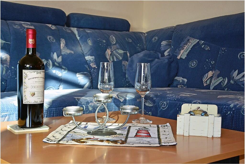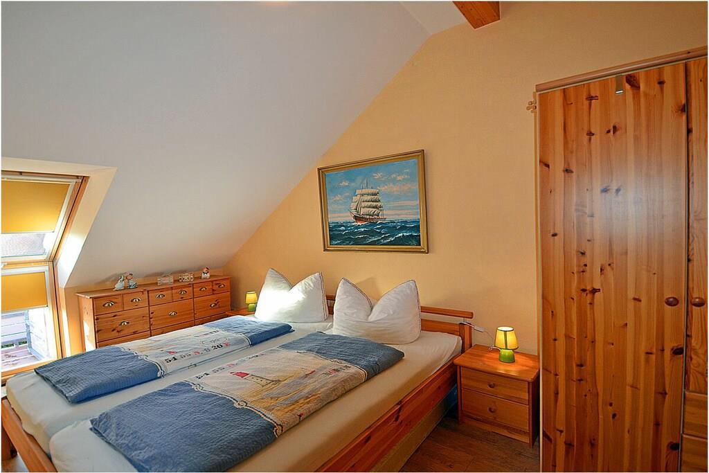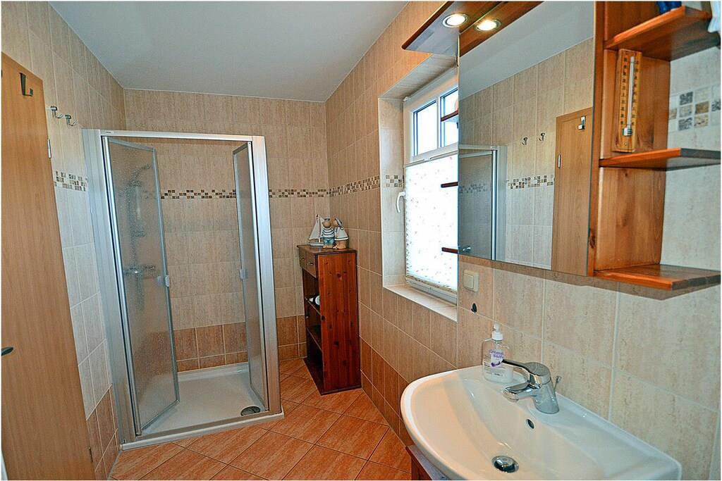 Erdgeschoss: großzügiger Wohn-, Essbereich mit Fußbodenheizung, gemütlicher Couchlandschaft und TV-Sat (Flatscreen), Musikanlage/CD-Player, DVD-Player, Blu-ray Player, Internet (WLAN), Gesellschaftsspiele und Bücher für gemütliche Abende, komplett ausgestattete moderne Einbauküche mit Esstisch, Ceranherd, Kühlschrank mit kleinem Gefrierfach, Geschirrspüler, Mikrowelle und diversen Elektrogeräten, großem Badezimmer mit Dusche/WC/Föhn. Obergeschoss: 2. Schlafzimmer mit je einem Doppelbett (getrennte Matratzen jeweils 90 x 200), Balkon und Kleiderschrank, 1. Kinderzimmer mit einem Einzelbett (90 x 200) und 1 Tandembett (90 x 2,00) (Einzelbett mit Ausziehfunktion (80 x 1,90)und Kleiderschrank, kleines Badezimmer mit Dusche und WC. Außenbereich: Terrasse mit gemütlichen Gartenmöbeln (6 Gartenstühle) und großem Sonnenschirm lädt zum Relaxen ein, Grillmöglichkeit besteht (Grill vorhanden), 1 PKW Stellplatz direkt am Objekt, Fahrradabstellmöglichkeiten (abschließbar) vorhanden.