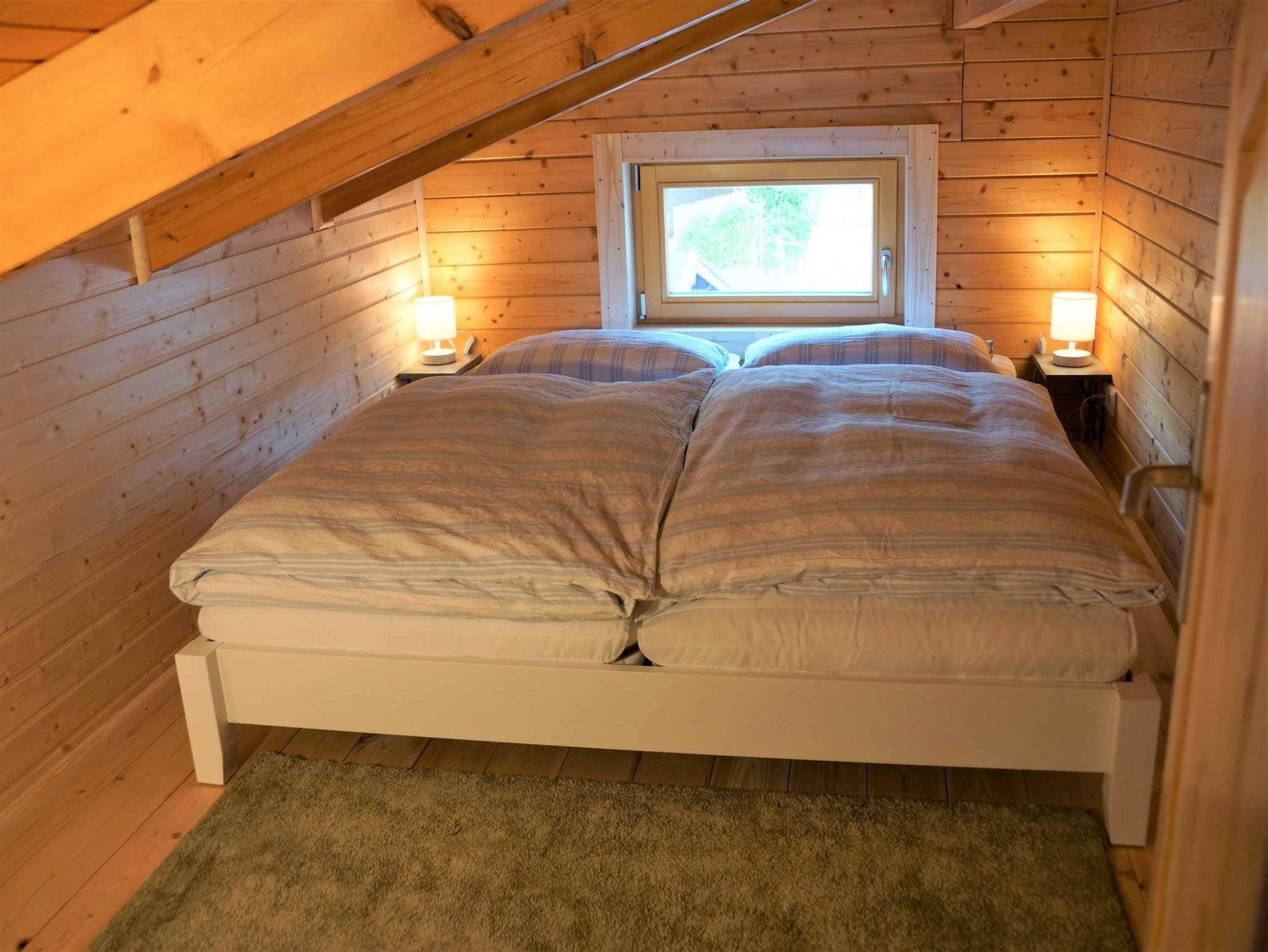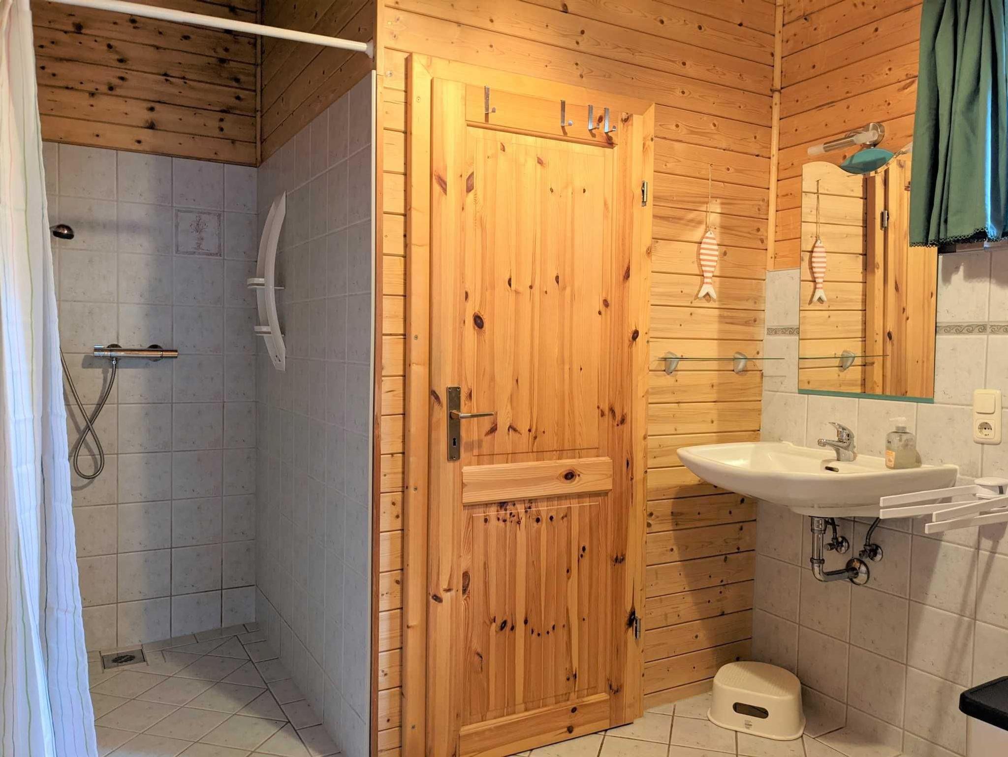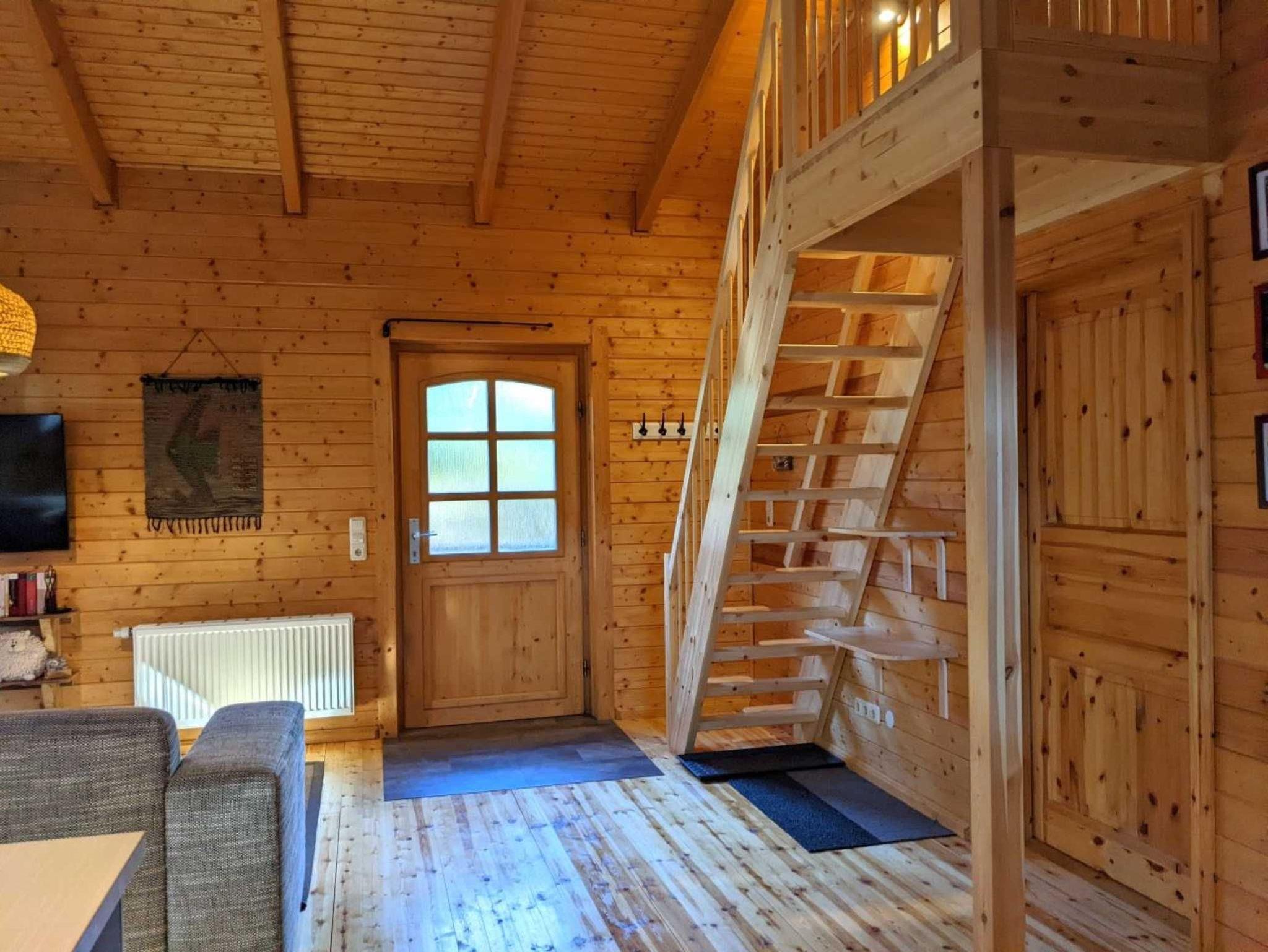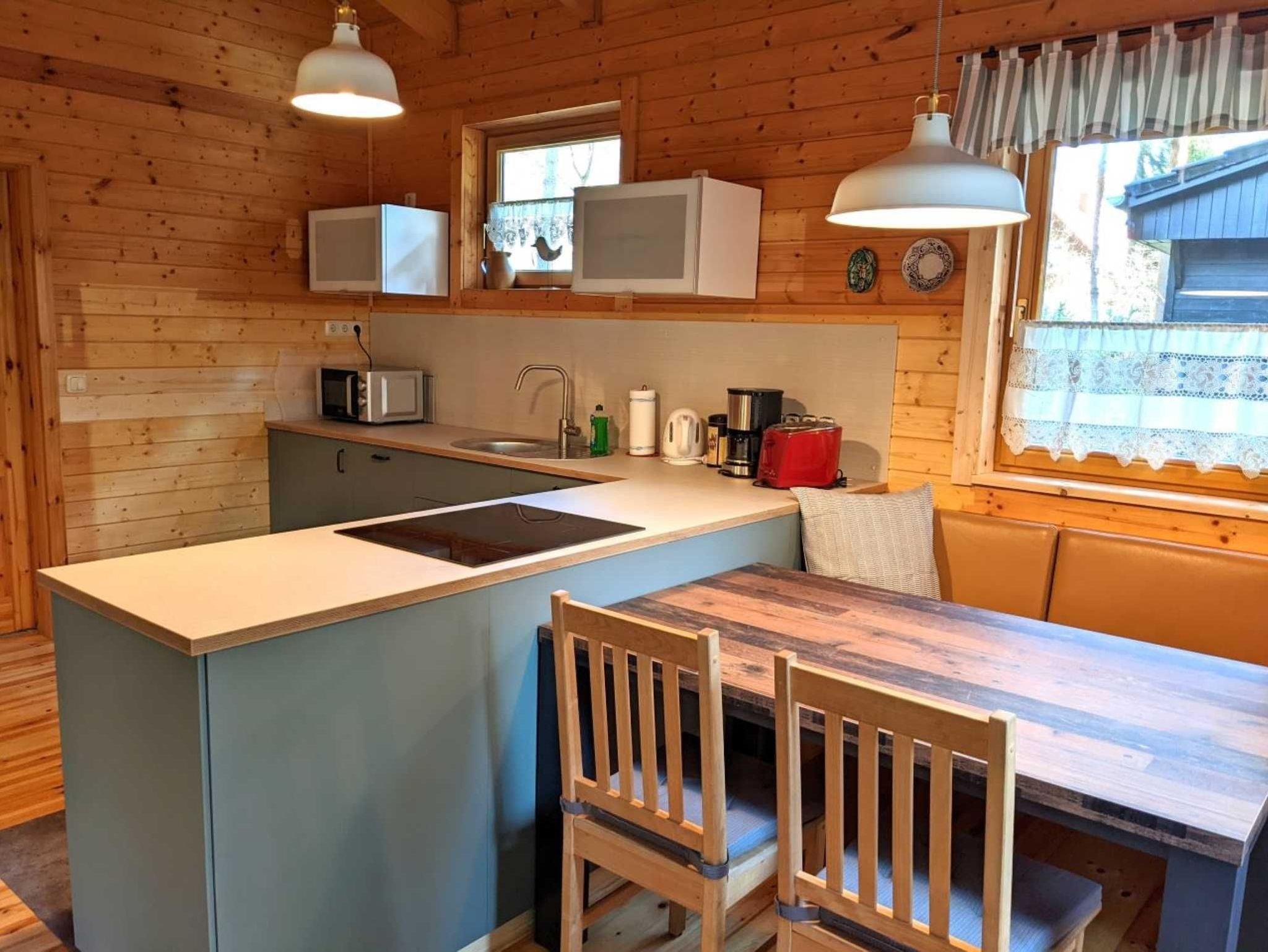 Das Holzhaus ist folgendermaßen ausgestattet: Komplett ausgestattete offene Küche (u. a. mit Induktionsherd und Backofen, Geschirrspüler, Kühlschrank, Kaffeemaschine, Wasserkocher, Toaster, Mikrowelle), gemütliche Essecke, Sofaecke mit Fernseher und Bücherregal, Schlafzimmer mit Doppelbett (1,80m x 2,00m), Schlafempore mit Doppelbett (1,60m x 2,00m) über eine Raumspartreppe erreichbar, großzügiges Bad mit ebenerdiger Dusche, Terrasse mit Sitzgelegenheit, großer Garten mit Sitzecke und Holzkohlegrill und Parkplatz auf dem eingezäunten Grundstück. Haustiere sind im Bungalow nicht erlaubt. Das Wäschepaket (Bettwäsche und Handtücher) kann für 25,00 EUR pro Person hinzugebucht werden.