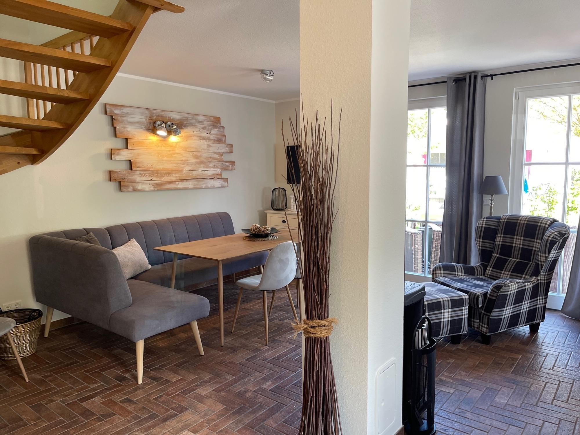 Im Erdgeschoss finden Sie ein großzügiges Entreè, einen gemütlichen Wohn- und Essbereich mit Kaminecke, einem Hauswirtschaftsraum sowie einem Schlafzimmer mit Doppelbetten und ein dazugehöriges Duschbad.