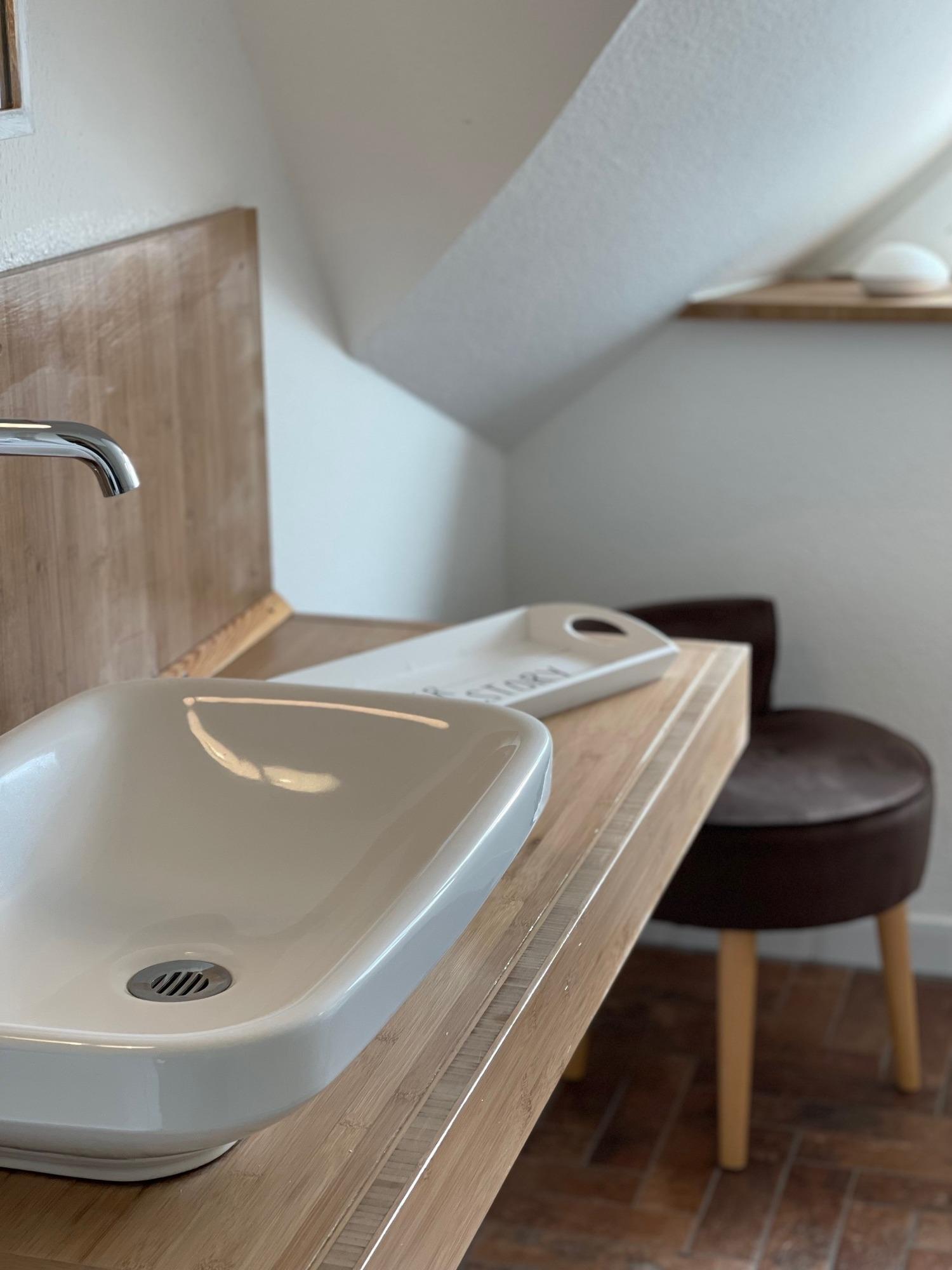 Im Außenbereich befindet sich der hübsch angelegte Garten mit Saunahaus, Schuppen und einem beheizbarem Badezuber (ganzjährig) mit Aussendusche.