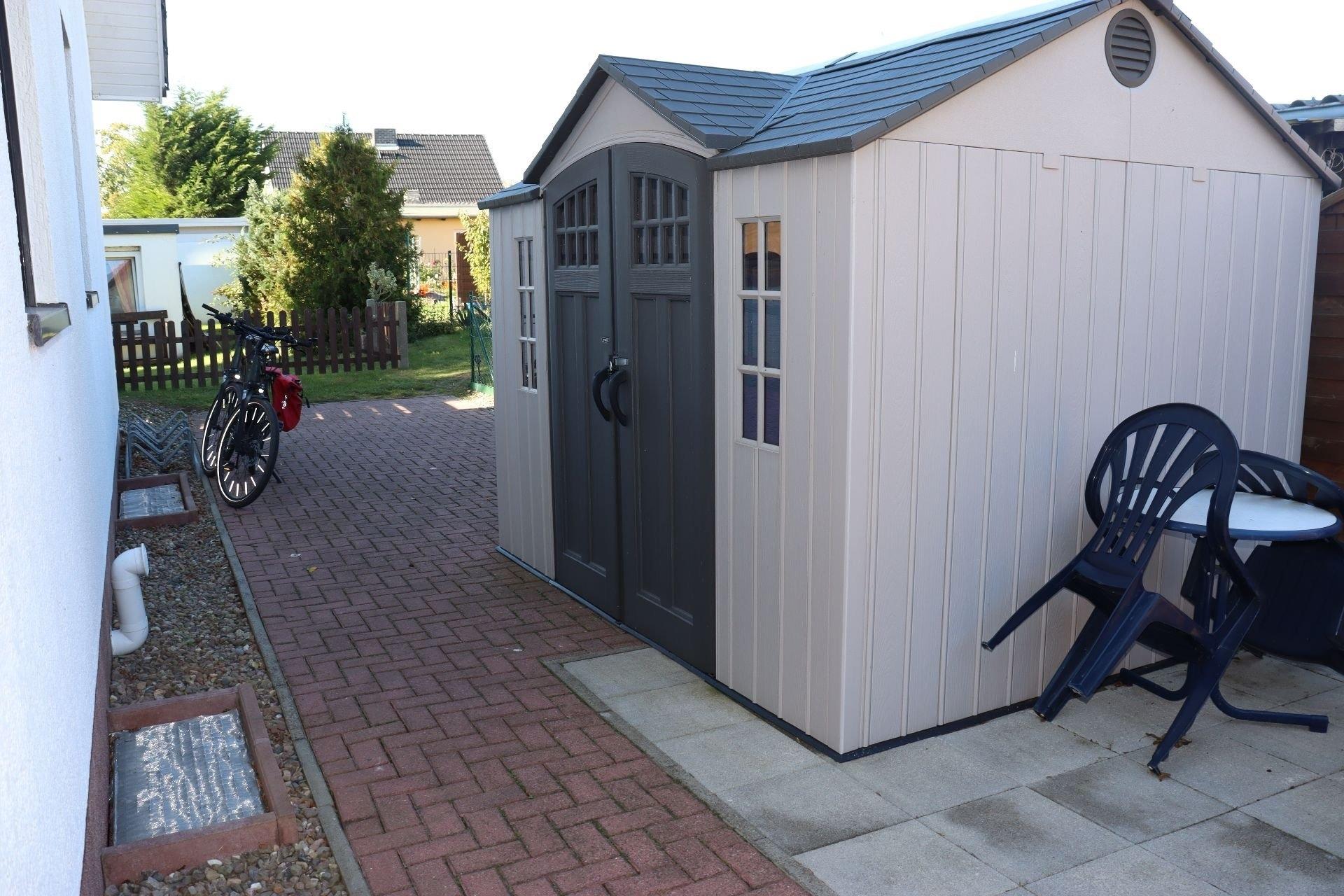 Ihre Fahrräder und Strandausrüstung können Sie in unserem Gartenhäuschen unterbringen.