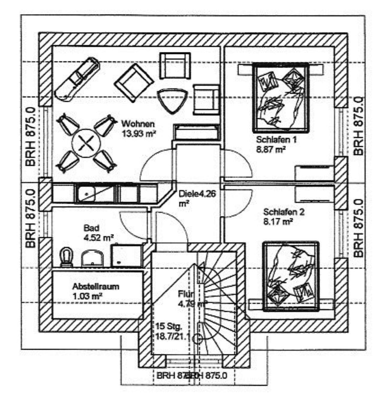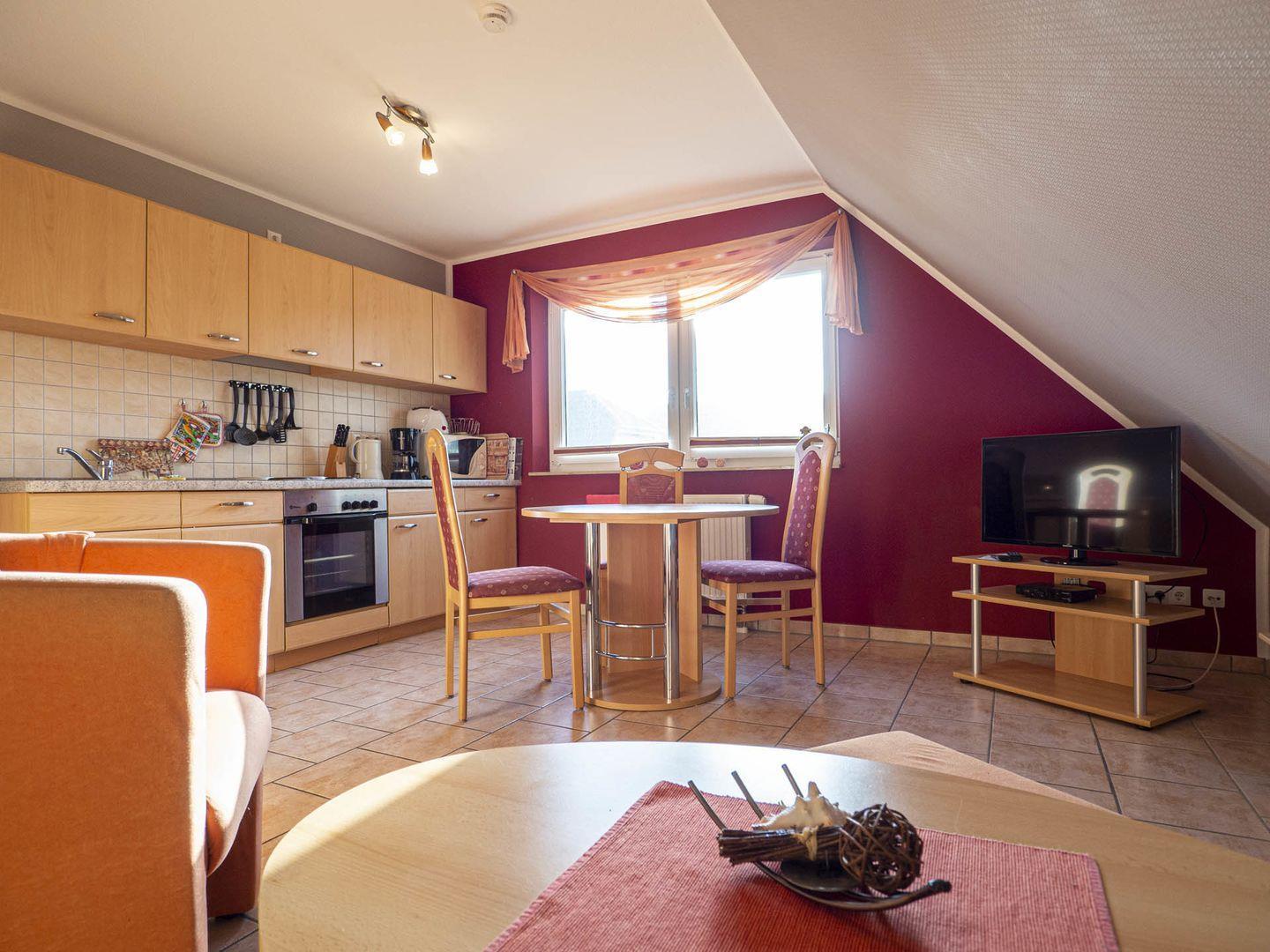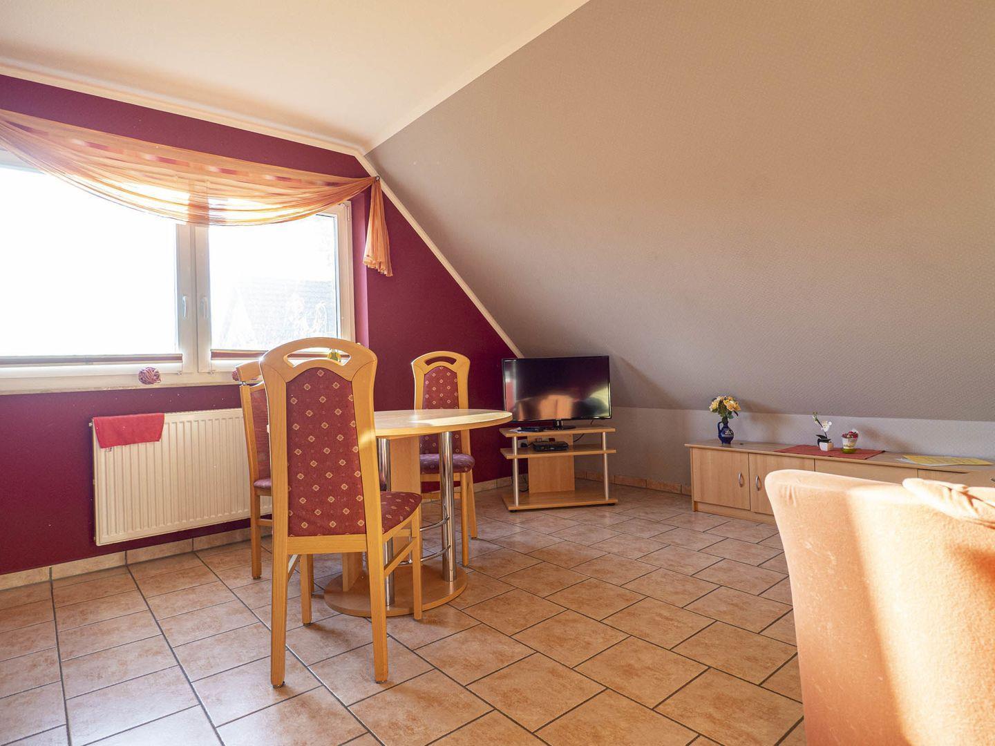 Die 3-Zimmer-Wohnung im Obergeschoß bietet Platz für 4 Personen. Sie hat eine Wohnfläche von ca. 50qm.