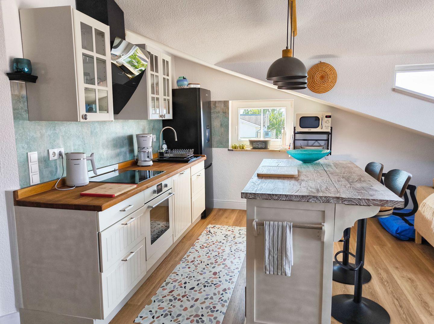 Mit komfortablem Schlafzimmer, voll ausgestatteter Küche und behaglichem Wohnbereich ist diese Ferienwohnung der ideale Ort für romantische Stunden oder geselliges Beisammensein. Entspannen Sie auf Ihrem Balkon oder der Terrasse, lassen Sie die Seele baumeln und fühlen Sie sich vom ersten Augenblick an einfach wie zu Hause.