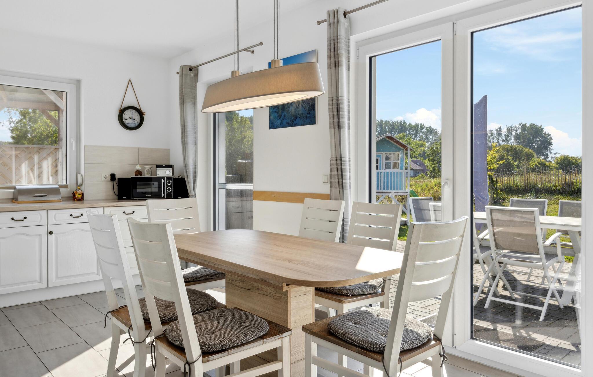 Feriehuset ligger ikke langt fra Glowes centrum lige ved Østersøen og her findes gode indkøbsmuligheder som kan nås på få minutter. Også restauranter og strandpromenade vil I nyde godt af. Byen ligger ved øens længste sandstrand. Der er gode strande for børn som kan pjaske uforstyrret i det lave vand. Øen har et hav af gode cykelstier og det kan betale sig at tage ud i landskabet på to hjul.