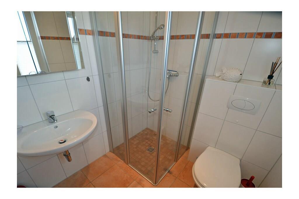 Erdgeschoss: großzügiger Wohn- Essbereich mit Fußbodenheizung, gemütlicher Couchlandschaft, TV/ Sat (Flatscreen), DVD- Player, Radio/ CD, Internet (WLAN), offene komplett ausgestattete Einbauküche mit 4- Plattenherd (Ceranfeld), Backofen, Kühlschrank mit großem Gefrierfach, Mikrowelle, Geschirrspüler und diversen Elektrogeräten, Bad im EG mit Dusche und WC, Hauswirtschaftsraum, Bügeleisen, Bügelbrett, Wäscheständer und Kinderhochstuhl Obergeschoss: 1. Schlafzimmer mit Doppelbett (2 Matratzen je 80 x 200) und Kleiderschrank, 2. Schlafzimmer mit Doppelbett (2 Matratzen je 80×200), Insektenschutz an den Fenstern, modernes Bad mit Dusche/ WC, Fön und Kosmetikspiegel Außenbereich: komplett umzäuntes Grundstück, Terrasse mit Gartenmöbel, 2 Sonnenliegen, Sonnenschirm, Grillmöglichkeit besteht (Grill vorhanden), gemütlicher, sonniger Wintergarten (nicht beheizbar), 1 PKW Stellplatz direkt am Objekt Zeit für Erholung - Freuen Sie sich auf schöne Urlaubstage im Ferienhaus "Blauer Stern" Das gemütliche Ferienhaus "Blauer Stern" ist liebevoll eingerichtet und bietet beste Voraussetzung für einen erholsamen Urlaub auf der Sonneninsel Rügen. Das umzäunte Grundstück mit Liegewiese und den sonnigen Wintergarten mit gemütlichen 4 Korbsessel und Tisch, lädt zum Entspannen ein. Internet (WLAN) steht Ihnen kostenfrei zur Verfügung. Für die Kleinen steht ein Kinderhochstuhl zur Verfügung. Bücher für Erwachsene und Kinder sowie verschiedene Gesellschaftsspiele stehen ebenfalls für Sie zur Verfügung. In unmittelbarer Nähe gibt es einen großzügigen Kinderspielplatz der jede Menge Spaß und Abenteuer bietet. Fußbodenheizung ist im gesamten Haus. Im Obergeschoss befinden sich die beiden Schlafzimmer und das Bad. Ein weiteres Duschbad ist im Erdgeschoss vorhanden. Das Ferienhaus "Blauer Stern" ist ein Nichtraucherquartier. Der PKW-Stellplatz befindet sich direkt am Objekt. Abstellmöglichkeiten (abschließbar) für Fahrräder sind vorhanden. Einkaufsmöglichkeiten, Bäcker, Restaurants und ein Getränkemarkt finden Sie in naher Umgebung. Optimale Rad- und Wandermöglichkeiten um die schöne Insel zu erkunden, runden das Angebot ab. Bei uns sind Hunde willkommen! (Gebühr Euro 5,-/ pro Hund/ pro Nacht).
