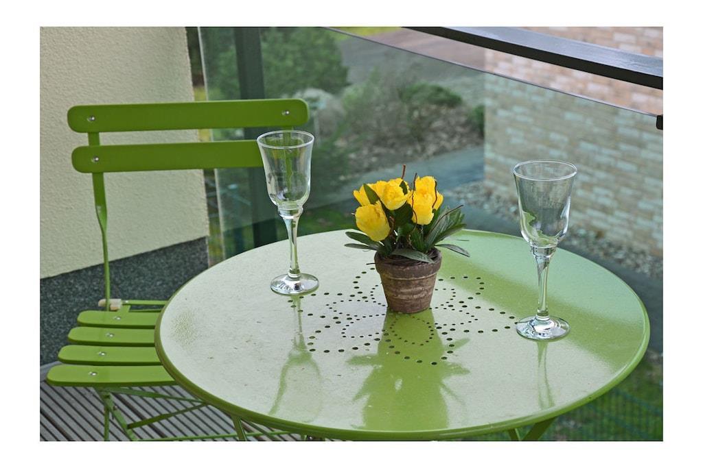On the 1st floor: (hallway(Mirror, Wardrobe Coatrack, heating), Living/diningroom(Games, Kitchenette, single sofa bed, TV, dining table, radio, electric kettle, toaster, cooker, coffee machine, microwave, fridge, freezer, heating), bathroom(Mirror, toilet, shower, washbasin, heating)) Fire Alarm, Hot Water, Internet Access DSL, bedroom(Wardrobe, double bed, heating), Internet access, balcony(grill, garden furniture), heating, parking