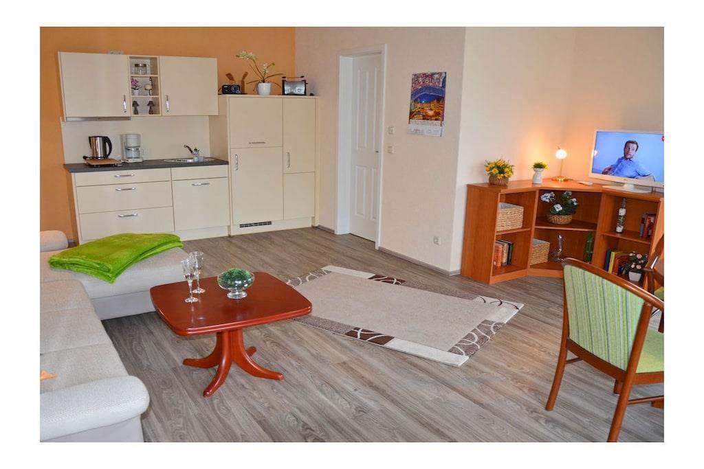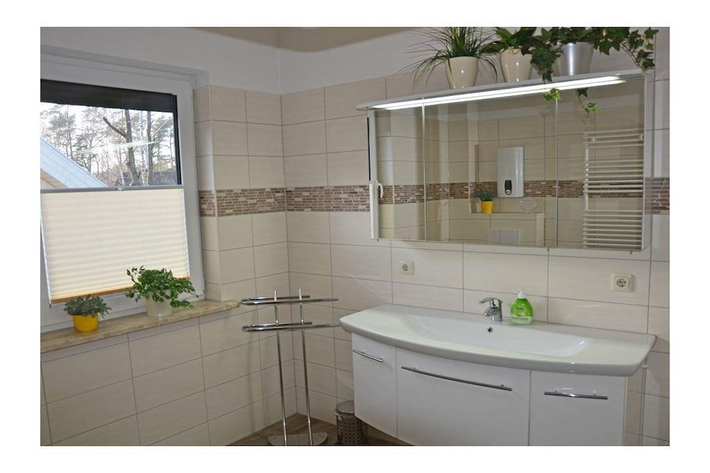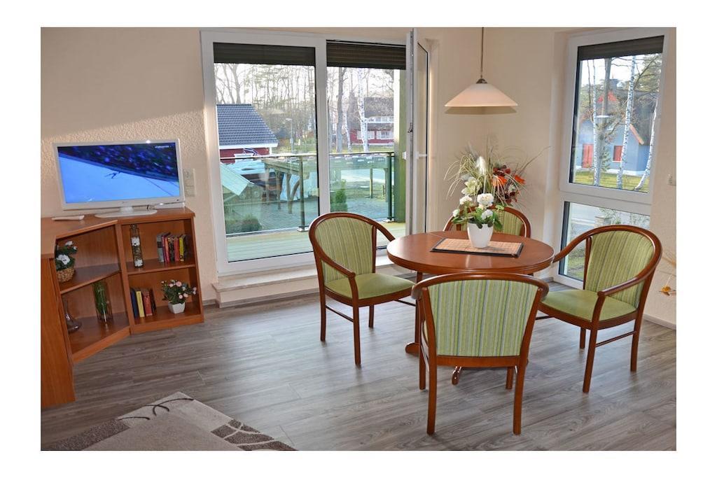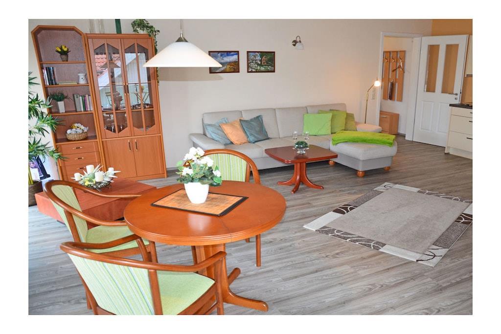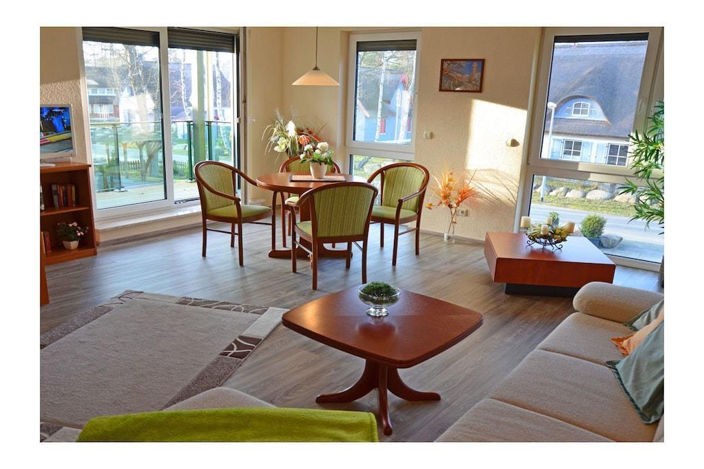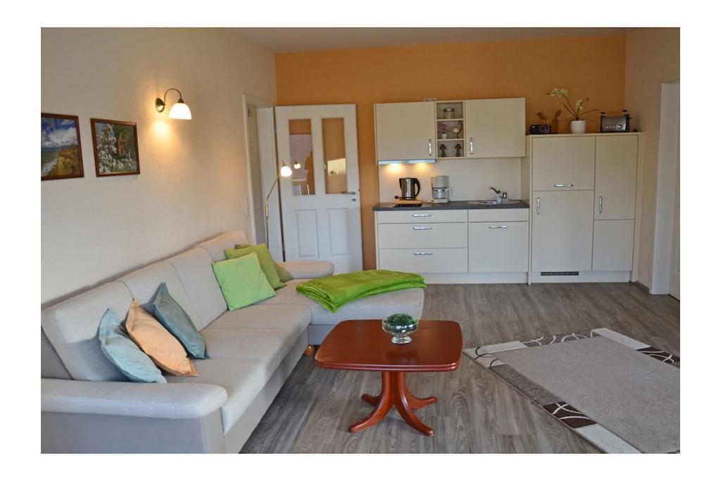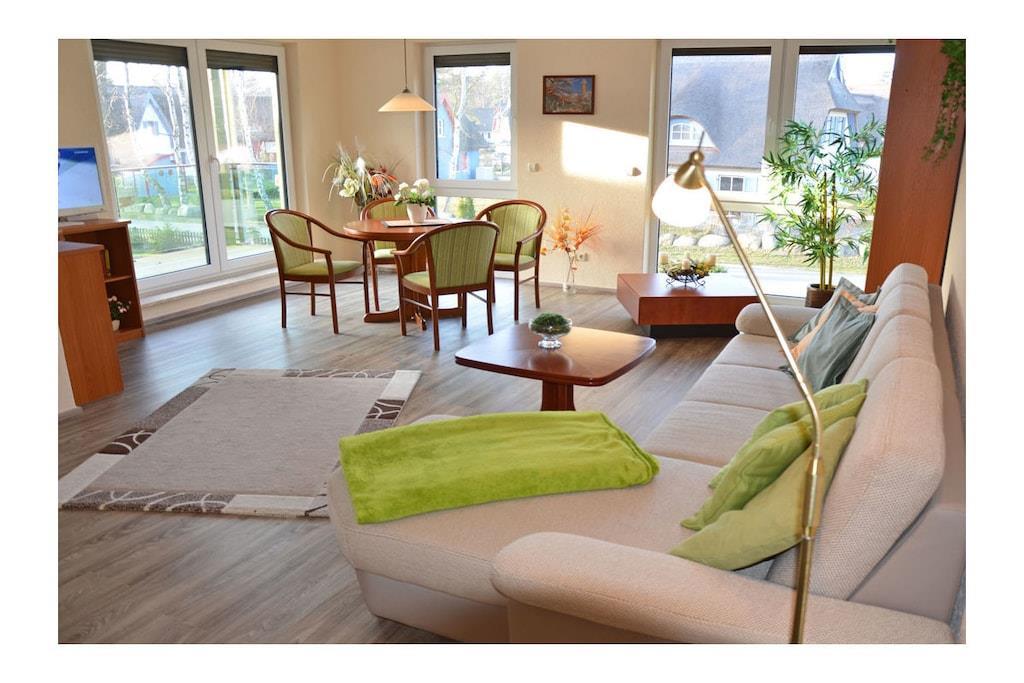 Only about 800 m to the sandy beach of the Baltic Sea in the resort town of Glowe, 1st floor with balcony, quiet location, about 1 km to the Bodden